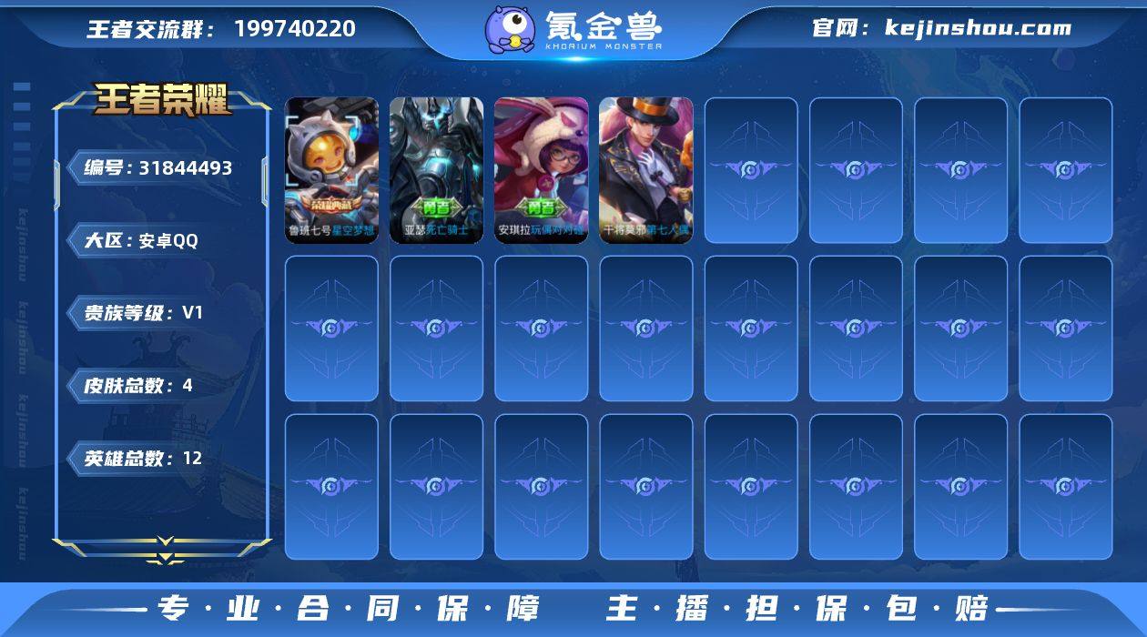 安卓Q-V0-荣耀黄金III段位-12英雄-4皮肤-1典藏皮肤【荣耀典藏】:鲁班七号星空梦想【其他皮肤】:安琪拉玩偶对对碰,亚瑟死亡骑士,干将莫邪第七人偶【营地ID】:1514609952