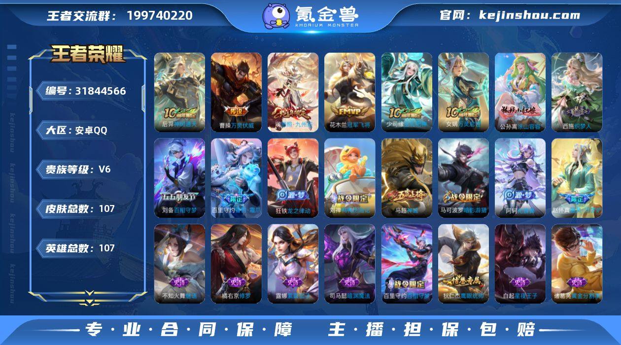 安卓Q-V6-永恒钻石V段位-107英雄-107皮肤-4传说-34史诗【英雄全皮】:空空儿全皮,影全皮【传说皮肤】:后羿神树通天,曹操万灵伏威,澜愿照九州拓,花木兰冠军飞将【限定皮肤】:姜子牙天穹之誓,狄仁杰阴阳师,赵云皇家上将,马可波罗暗影游猎,狄仁杰魔术师,项羽海滩派对,刘备百相守梦【年限皮肤】:澜愿照九州拓【赛季限定】:姜子牙天穹之誓,东皇太一噬灭天穹,太乙真人谧流熔炉,钟馗虚灵犬护,甄姬逆浪荇歌,亚瑟荣光之誓【战令限定】:马可波罗暗影游猎,百里守约百相守梦,老夫子百相守梦,孙膑茶境仙,马超访茗客,刘禅鸭鸭历险记,沈梦溪鸭鸭历险记【史诗皮肤】:露娜紫霞仙子,赵云皇家上将,王昭君偶像歌手,狄仁杰魔术师,宫本武藏鬼剑武藏,孙尚香水果甜心,妲己魅力维加斯,墨子金属风暴,刘邦德古拉伯爵,兰陵王暗隐猎兽者,诸葛亮黄金分割率,李元芳逐浪之夏,程咬金功夫厨神,白起星夜王子,孙策猫狗日记,狄仁杰鹰眼统帅,不知火舞魅语,橘右京修罗,马超神威,马可波罗暗影游猎,司马懿暗渊魔法,刘备百相守梦,百里守约百相守梦,孙膑茶境仙,弈星万物之道,赵怀真器灵浮梦炉,阿轲化蝶舞,刘禅鸭鸭历险记,狂铁龙之律动,百里守约雪豹霜爪,西施织梦人,公孙离涂山容容,女娲万灵启世,少司缘巫礼祀神【其他皮肤】:项羽海滩派对,韩信教廷特使,赵云忍炎影,妲己少女阿狸,亚瑟死亡骑士,达摩拳王,宫本武藏万象初新,狄仁杰阴阳师,刘备汉昭烈帝,诸葛亮掌控之力,李白敏锐之力,杨戬次元傲视,妲己紫罗兰之誓,马可波罗潮玩牛仔,赵怀真太极少年,姬小满零食大作战,后羿完美运算,姜子牙天穹之誓,盘古敬我三分,东皇太一噬灭天穹,老夫子百相守梦,苍苍林狼骑,太乙真人谧流熔炉,典韦铁骨偃魂,马超访茗客,影魅影绮裳,西施雪境奇遇,少司缘灵卦秘语,明世隐景韶洛都,戈娅玫蓝...