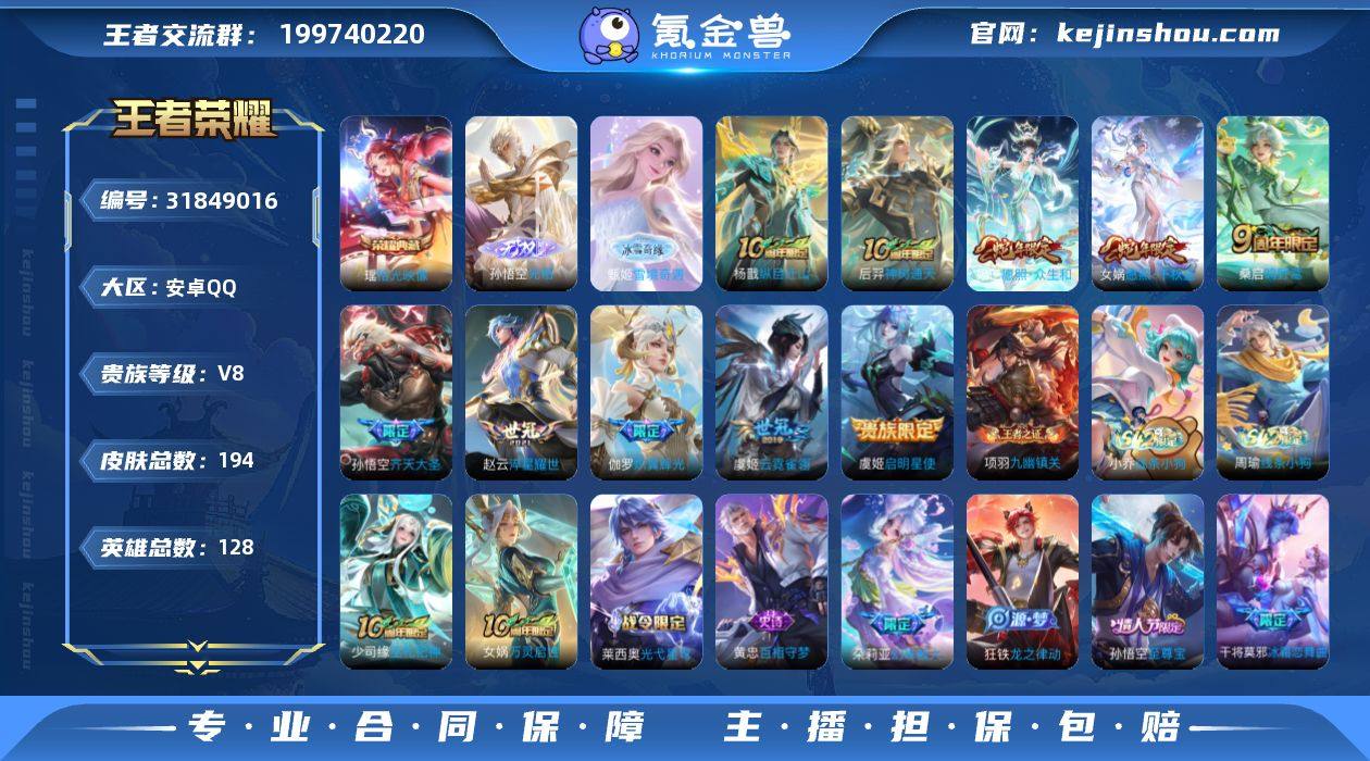 夺宝剩余25次 451点卷 贵族8-194皮1典藏10传说2无双 安卓手Q366区194皮1典藏10传说2无双V8 营地ID1884746495无双王者【无双皮肤】:无相,雪境奇遇【荣耀典藏】:拾光映像【优质限定皮肤】:至尊宝【传说皮肤】:纵目迁山,神树通天,启明星使,炽翼辉光,愿照·千秋盛,愿照·众生和,鸣野蒿,云霓雀翎,齐天大圣,淬星耀世【史诗皮肤】:水晶猎龙者,无心,线条小狗,乘风破浪,九幽镇关,天秀·启明,节奏热浪,绅士熊喵,巫礼祀神,晚萤,万灵启世,光弋星穹,冰霜恋舞曲,至尊宝,暗夜猫娘,百相守梦,幻珠鲛人,星界战将,青蛇,天才门将,水果甜心,龙之律动,荣光圣徽,苍鳞隐世,魅语,乱世虎臣,地狱岩魂,谪仙醉月,时之恋人,电玩小子,鬼剑武藏,黎明之约,圣诞狂欢,江河有灵,金属风暴,电玩·爆裂旋风,暗隐猎兽者,幽灵船长,冰雪圆舞曲,逐浪之夏,拒霜思,热力回旋,航海奇遇记,紫霞仙子,曙光守护者,女仆咖啡,魔术师,皇家上将,特工魅影,李小龙,魅力维加斯