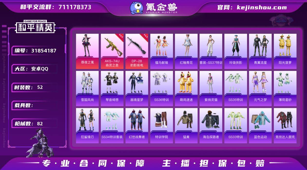 可二次实名【4特效枪1粉装 秒换绑不用等】 安卓Q区-21664热力值-2印记-52套装-82枪皮 【1粉装】 罪夜之冕【4特效枪】 AKS-74U-森灵之息(5级) Mk14-福马献瑞(5级) UMP45-萌骑冒险(4级) DP-28-豹影疾电(5级)【94热门】 浪漫天命 SS27特训 MG3-幻世战舞者 AKM-星之彼岸 M416-蓝色火焰 长空猛禽 特训学院 魅力单车 蓝色运动 竞技达人朋克 黑色伏地魔 海岛探路者 AA12-G-雨过天青 沙漠之鹰-雨过天青 平底锅-画境星梦 P90-紫矿核心 GROZA-紫矿核心 玲珑侠影 M16A4-雨过天青 雨过天青 MG-36-薄荷星砂 GROZA-福马献瑞 SS34特训 星渊小夜曲 撬棍-冰晶雪宝 AWM-天降萌叽 福马献瑞 蓝冰羽 ACE32-冰晶雪宝 青翼流星 SS28特训 海盐绵绵冰 SS33特训 紫幽梦 狂鲨锋刃 SS36特训 X 蜜獾-启元战纹 马上有钱 狙击之神 TMP-9-雪月幻音 UMP45-海盐豹豹 Mk14-紫晶流影 Mini14-炫彩节奏 Mk14-薄荷星砂 燃烧瓶-福马献瑞 PKM-紫幽梦 ACE32-画境星梦 M1加兰德-画境星梦 琴音绮想 Mk14-紫幽梦 AKM-涂鸦街区 UZI-冰河战士 平底锅-精灵梦叶罗丽 烟雾弹-冰氧夏日 SCAR-L-彩虹符号 SS35特训 S1897-紫幽梦 P92-紫幽梦 平底锅-紫幽梦 突击盾牌-绝对恒星 元气之梦 TMP-9-萌萌史莱姆 M416-小财神当家 S12K-霓彩脉冲 AKM-霓彩脉冲 MP5K-画境星梦 AA12-G-画境星梦 雪国风尚 M24-幻彩电音 破片手榴弹-拽到爆炸 十字弩-异瞳寒姬 Famas-霓彩脉冲 SVD-霓彩脉冲 SLR-霓彩脉冲 铝热弹-炫彩糖果 UZI-炫彩糖果 P90-玩趣呆呆 AUG-冰晶雪宝 MK20-H-狂鲨锋刃 SPAS-12-狂鲨锋刃 SCAR-L-海盐豹豹 紫俏灵猫 M249-冰晶雪宝 萌鸡速递 SS37特训 炫彩糖果 AMR-雨过天青 PKM-雨过天青 红釉青花 元素星魂 画境星梦 M