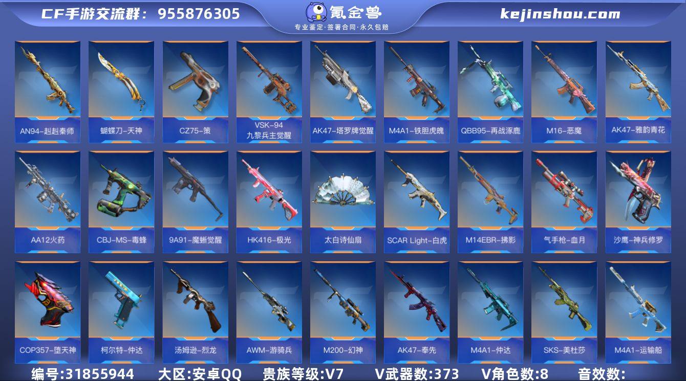 【QZZ2455】VIP7/373V/仲达套/王者之力/王者之影/王者之心/王者之神/王者之蝶/王者之魂/王者之誉/王者之盘/王者之尊/CZS2-仲康/AN94-盖/81式-光明之神/M4A1-仲达/AK47-奉先/M4A1游骑兵/M200-幻神/AWM-游骑兵/81式-阿波罗/COP357-堕天神/M4A1-游骑兵-寒霜/葵/关小雨/蔡文昭/夏日灵狐-X/祝融夫人/零-新生/步练师/钟小魁/AK47-无影/AK47-沙漠领主/AK47-天使/AK47-猩红传说/AK47-幸运日/AK47-燎天净火/AK47-雷麒麟/AK47-血武士/AK47-木兰/AK47-雅韵青花/AK47-塔罗牌觉醒/AK47-谜城烟火/M4A1-雷神/M4A1-黑骑士/M4A1-死神/M4A1-樱龙·超觉/M4A1-龙血/M4A1-机械迷城/M4A1-赛博雷神/M4A1-海骑士/M4A1-黑龙钰-子涵/M4A1-破空冰刃/M4A1-运输船/M4A1-猎神/M4A1-铁胆虎魄/SCAR Light-白虎/SCAR-探星者/SCAR-心动PICK/AN94-超新星/剑齿虎-炫彩/AN94-赳赳秦师/AUG-机械纪元/FAMAS-湮灭/9A91-天神/9A91-魔蜥觉醒/M14EBR-拂影/M14EBR-葫芦山庄/M16-恶魔/AK12-天启/QBZ03-湮灭/QBZ03-金色蔷薇/QBZ03-死神/HK416-极光/HK417-炎龙铠甲/QBZ19-天使/G36-李星云/MK47-云舞/SKS-美杜莎/G3A3-衍神兵/FN F2000-十绝阵觉醒/QBZ97-浩瀚征途/QBZ191-封神榜/QBZ191-帝皇铠甲/SBR-湮灭/AWM-天龙/AWM-天使/AWM...
