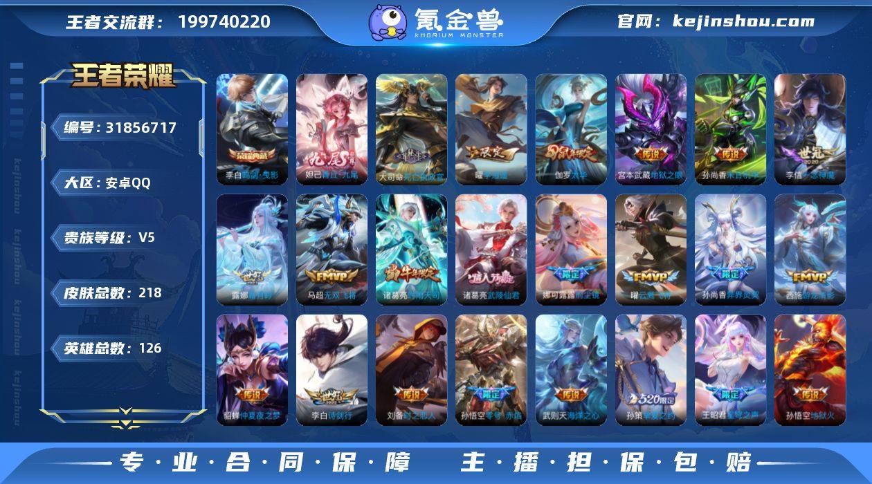 编号97363 不可二次v8 218皮肤 1典藏 1无双 24传说 青丘·九尾 鸣剑·曳影 李逍遥 至尊宝 神威 零号·赤焰 武陵仙君 时雨天司 星穹之声 前尘镜 挚爱之约 太华 死亡执政官 龙胆 一生所爱 飞衡 瑞麟志 朱雀志 青龙志 岱宗 白晶晶 云鹰飞将 霜月吟 诗剑行 音你闪耀 启明星使 一念神魔 地狱火 地狱之眼 仲夏夜之梦 海洋之心 孙尚香-末日机甲 游龙清影 时之恋人(男) 无双飞将