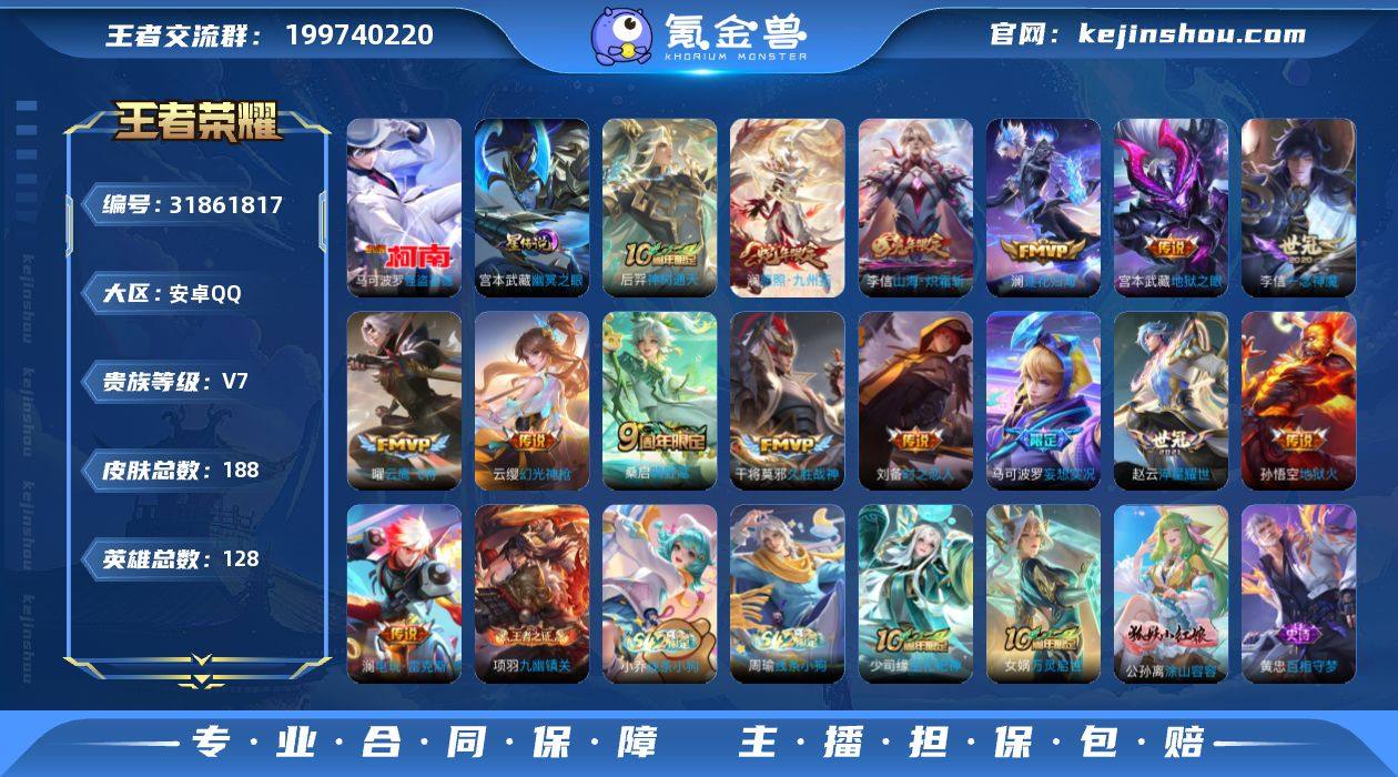 【W5787】【亮点:4.5K场次质量号-满皮澜-232夺宝幸运值】安卓Q-可二次-贵7-128英雄-188皮肤-2星元-1珍品传说-15传说-62限定-15按键-贵族积分26696-营地ID:1724016901(热门:马可波罗怪盗基德-澜愿照九州拓,云缨幻光神枪-澜逐花归海,马可波罗妄想实况,澜电玩雷克斯,李信山海炽霜斩) 【星元皮肤】:刘备时之思念,宫本武藏幽冥之眼