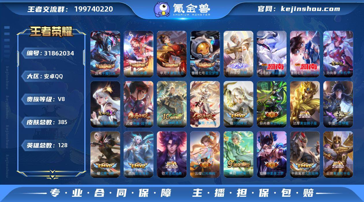 CZ2634 安卓QQ V8 385皮 4典藏1无双2珍品传说 云缨神骥·越千峰 2星元113限定23传说 巅峰1225 发育路22段 全能选手 18按键1天幕 3517星币 936英雄碎片 249皮肤碎片 11张改名卡 营地号:1759530184 【珍品传说】怪盗基德,江户川柯南, 【无 双】无相, 【荣耀典藏】星空梦想,大秦宣太后,拾光映像,千魇归渊, 【星元皮肤】金色仲夏夜,未来机甲, 【热门限定】神骥·越千峰,愿照·九州拓,器灵·浮梦炉,至尊宝,琥珀纪元伽罗,岱宗,百木心枪,匿光追影者,启明星使,匿光决锋者,埋骨钱,逐霄战戟,巫礼祀神,涂山容容, 【限定传说】拒霜思,猫狗日记男,久胜战神,一念神魔,猫狗日记女,云鹰飞将,孙行者,地狱火,暗夜猫娘,游龙清影,时之恋人女,诗语江南,修罗,乞巧织情,冠军飞将,龙骑士,梁祝,未来纪元,神迹守卫,音你心动男,炽阳神光,云霓雀翎,黄金狮子座,黄金白羊座,黄金射手座,天秀·启明,黄金分割率,超时空战士,仲夏夜之梦,魅语,千年之狐,末日机甲男,末日机甲女,无限星赏官,原初探秘者,暗隐猎兽者,水晶猎龙者,金属风暴,地狱岩魂,热力回旋,特工魅影,曙光守护者,幻光神枪,圣诞恋歌,舞动绿茵,逐浪之夏,心灵战警,紫霞仙子,功夫厨神,心灵骇客,幽灵船长,乘风破浪,圣诞狂欢,星夜王子,永昼,节奏热浪,天才门将,绅士熊喵,暗夜贵公子,偶像歌手,街头霸王,箭羽风息,摇滚巨星,缤纷独角兽,鬼剑武藏,朔望之晖,德古拉伯爵,冰冠公主,狂想玩偶喵,花好人间,混沌棋,疑决卦,醍醐杖,万华元夜,拳王,女仆咖啡,霸王丸,敏锐之力,丁香结,炽阳神光,瓦猫非猫,舞狮寰,赤刃凌霄,