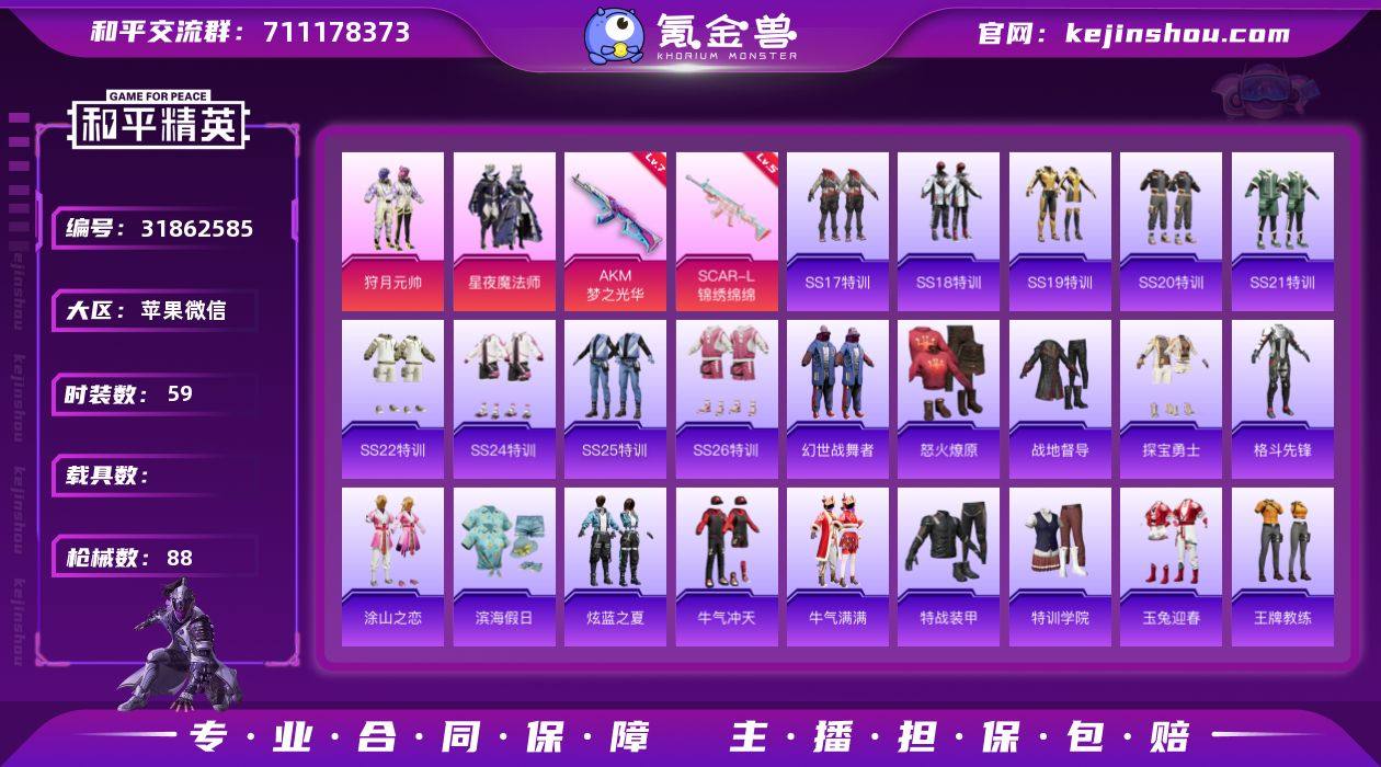 苹果微信 S-CWZ094【2粉装2特效枪1粉色飞行器 狩月元帅/星夜魔法师】27990热力值-8王牌印记-59套装-88枪皮 【粉色套装】:粉装-狩月元帅,粉装-星夜魔法师 【粉色枪皮等级】:AKM-梦之光华(七级),SCAR-L-锦绣绵绵(五级) 【粉色枪皮】:AKM-梦之光华,SCAR-L-锦绣绵绵 【粉色飞行器】:星夜魔法师飞行翼 【粉色降落伞】:恐龙拽拽降落伞,绒雪飘舞降落伞,圣堂之誓降落伞,太空嘟嘟降落伞,筑梦精灵降落伞,星夜魔法师降落伞,星穹咏叹调降落伞,极意拳锋降落伞 【稀有枪皮】:AKM