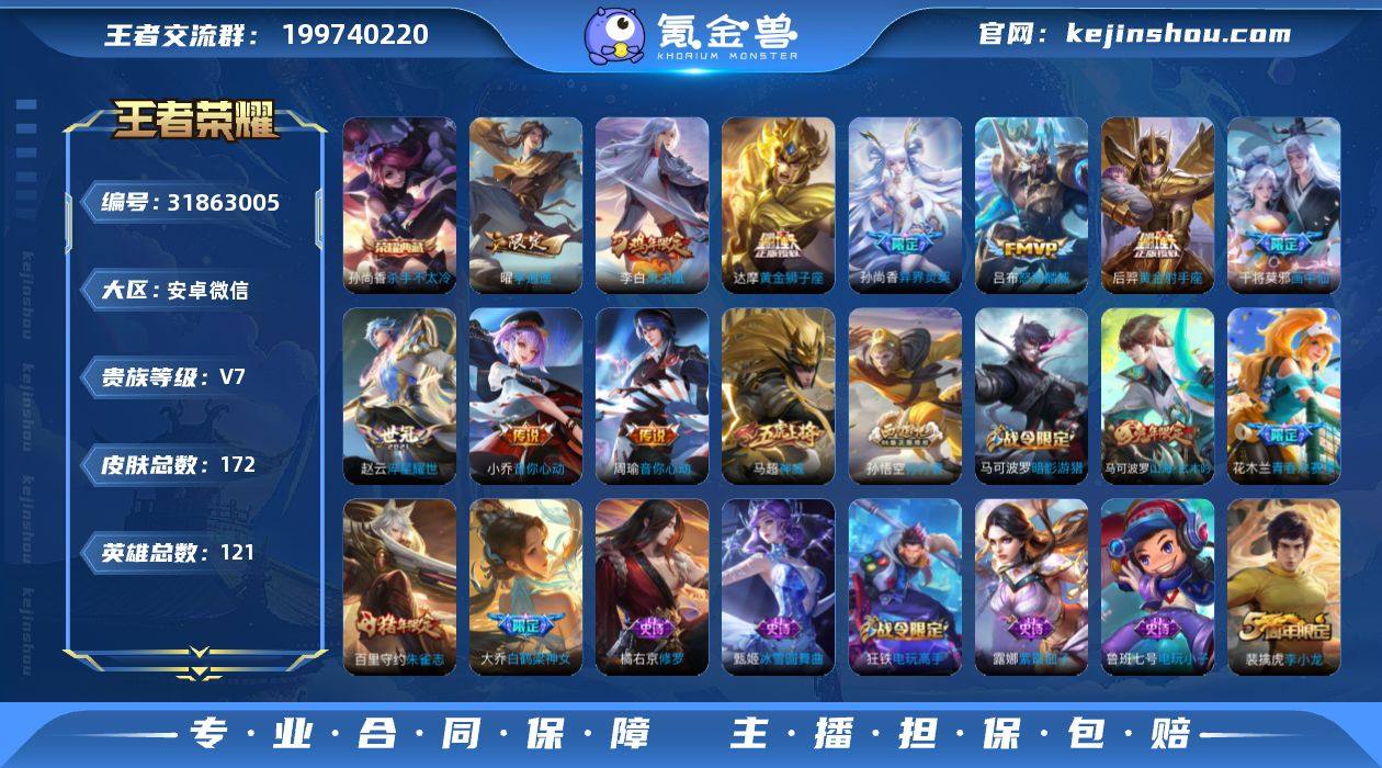 安卓Q-V1-永恒钻石II段位-124英雄-291皮肤-2典藏皮肤-17传说-86史诗 【英雄全皮】:金蝉全皮,影全皮 【荣耀典藏】:孙悟空全息碎影,诸葛亮星域神启 【传说皮肤】:诸葛亮鹤羽星尊,马可波罗深海之息,后羿无尽星芒,赵云淬星耀世,铠绛天战甲,虞姬启明星使,曜云鹰飞将,李信一念神魔,刘备时之恋人,干将莫邪久胜战神,虞姬云霓雀翎,达摩黄金狮子座,诸葛亮武陵仙君,孙尚香末日机甲,宫本武藏地狱之眼,孙悟空地狱火,狄仁杰超时空战士 【限定皮肤】:狄仁杰阴阳师,赵云皇家上将,墨子神迹守卫,庄周高山流水,高渐离玩趣恶龙,白起夜都怪侠,芈月幻夜卜梦,元歌云间偶戏,夏侯惇匿光决锋者,马可波罗深海之息,狄仁杰魔术师,狄仁杰万华元夜,达摩星际陆战队,达摩沙漠行僧,项羽海滩派对,老夫子醍醐杖,老夫子航海奇遇记,程咬金演武夺筹,韩信逐梦之影,韩信傲雪梅枪,王昭君午后时光,兰陵王金庭之子,亚瑟潮玩骑士王,后羿圣弓游侠,后羿无尽星芒,李元芳云中旅人,虞姬启明星使,钟馗驱傩正仪,干将莫邪胡桃夹子,干将莫邪真爱魔法,鬼谷子原初探秘者,鬼谷子五谷丰年,诸葛亮武陵仙君,诸葛亮鹤羽星尊,黄忠火炮绅士,铠青龙志,苏烈千军破阵,公孙离蜜橘之夏,沈梦溪大漠名商,明世隐疑决卦,明世隐吟游魔法,裴擒虎李小龙,裴擒虎擒涛扼浪,狂铁电玩高手,米莱狄胡桃异想国,云中君纤云弄巧,伽罗天狼溯光者,上官婉儿梁祝,嫦娥暖冬兔眠,鲁班大师探海日志,桑启海盐诗旅,金蝉唐三藏,暃星界游侠,张良古海寻踪,鬼谷子天穹祈灯 【年限皮肤】:铠青龙志 【赛季限定】:明世隐疑决卦,老夫子醍醐杖,鬼谷子原初探秘者,狄仁杰万华元夜,程咬金演武夺筹,钟馗驱傩正仪,苏烈千军破阵,达摩沙漠行僧,兰陵王金庭之子,沈梦溪大漠名商,李元芳云中旅人,桑启海盐诗旅,裴擒虎擒涛扼浪,鲁班大师探...
