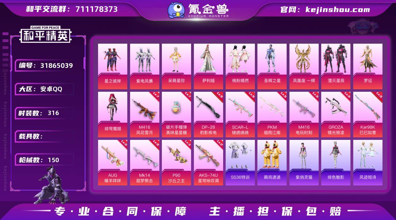 P90-沙丘之主!七级M416-风花雪月!七级破片手榴弹-美味星星糖!47314热力值!300天特权卡!D11115.安卓QQ- (85) 套装-(10)粉装-热门装扮【星之彼岸,紫电风暴,呆萌星弥,萨利娅,桃粉嫣然,圣辉之星,凤凰座 一辉,湮灭星辰,罗征,绯穹魔姬】(139)武器皮肤-12粉枪【M416风花雪月,P90沙丘之主,SCAR-L-锦绣绵绵,PKM江南烟雨,M416电玩时刻,GROZA-镜光银凌,Kar98K-巳巳如意,AUG-暖羊咩咩,AKS-74U-星穹咏叹调,MK14-甜梦熊击,破片手榴弹-美味星星糖,DP-28-豹影疾电】(164)其他-(17)粉色飞行器(7)粉色降落伞-优质战备【飞行器-齐天大圣,齐天大圣降落伞,镜光幻境飞行翼,蜜语绒猫降落伞,镜域双华-灵镜之阶,镜域双华降落伞,江南烟雨降落伞,精灵梦叶罗丽降落伞,龙翔九天飞行器,墨龙九天降落伞,冷魅冰骑降落伞,鬼刀降落伞,彩虹独角兽飞行器,圣斗士星矢降落伞,星穹咏叹调降落伞,湮灭星辰降落伞,幻彩电音降落伞,双重狂想降落伞,冷漠罗丽降落伞,喜羊羊与灰太狼降落伞,炫彩糖果飞行器,炫彩糖果降落伞,极意拳锋降落伞】