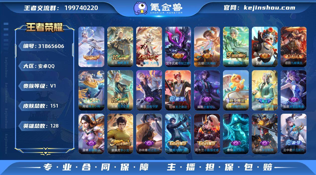 【秒换绑】安卓Q-V1-尊贵铂金II段位-126英雄-186皮肤-2典藏皮肤-1传说-45史诗 【英雄全皮】:戈娅全皮 【荣耀典藏】:孙悟空全息碎影,鲁班七号星空梦想 【传说皮肤】:桑启鸣野蒿 【限定皮肤】:蒙犽顽岩魄,姜子牙天穹之誓,狄仁杰阴阳师,赵云皇家上将,墨子神迹守卫,孙尚香蔷薇恋人,庄周高山流水,钟无艳超时空战士,扁鹊奇幻香踪,白起夜都怪侠,芈月幻夜卜梦,元歌无心,甄姬落雪兰心,狄仁杰魔术师,达摩沙漠行僧,项羽海滩派对,老夫子航海奇遇记,王昭君午后时光,兰陵王金庭之子,亚瑟潮玩骑士王,后羿圣弓游侠,李元芳云中旅人,钟馗驱傩正仪,杨玉环遇见飞天,杨戬潮玩骑兵,干将莫邪胡桃夹子,干将莫邪真爱魔法,雅典娜黎明之约,鬼谷子五谷丰年,黄忠火炮绅士,苏烈千军破阵,沈梦溪大漠名商,明世隐吟游魔法,裴擒虎擒涛扼浪,狂铁电玩高手,上官婉儿梁祝,嫦娥暖冬兔眠,西施玲珑珍味,鲁班大师探海日志,桑启海盐诗旅,暃星界游侠,戈娅驭风魔法,阿古朵江河有灵,张良古海寻踪,妲己灵卜魔法,鬼谷子天穹祈灯,沈梦溪龙舞盛年,周瑜熔金海岸 【赛季限定】:钟馗驱傩正仪,苏烈千军破阵,达摩沙漠行僧,兰陵王金庭之子,沈梦溪大漠名商,李元芳云中旅人,桑启海盐诗旅,裴擒虎擒涛扼浪,鲁班大师探海日志,张良古海寻踪,鬼谷子天穹祈灯,姜子牙天穹之誓,东皇太一噬灭天穹,太乙真人谧流熔炉,钟馗虚灵犬护,甄姬逆浪荇歌,亚瑟荣光之誓,雅典娜黎明之约 【战令限定】:亚瑟潮玩骑士王,老夫子航海奇遇记,墨子神迹守卫,干将莫邪真爱魔法,后羿圣弓游侠,黄忠火炮绅士,芈月幻夜卜梦,明世隐吟游魔法,白起夜都怪侠,狂铁电玩高手,王昭君午后时光,钟无艳超时空战士,甄姬落雪兰心,暃星界游侠,嫦娥暖冬兔眠,扁鹊奇幻香踪,杨戬潮玩骑兵,戈娅驭风魔法,西施玲珑珍味,妲己灵卜魔法 【史...