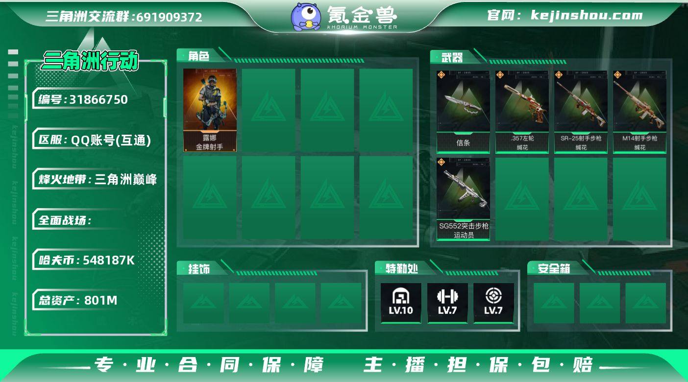 【qq钱包无法注销介意勿拍】"YXB-满体满负-548187k哈伏币-总资产801m流动资产744m-60烽火等级-三角洲巅峰-1战场等级-无军衔 s83x3 部门44444特勤处仓库10训练中心7靶场7 【干员外观】:露娜-金牌射手 【近战皮肤】:近战-信条,近战-黑鹰 【传说外观】:SG552突击步枪-运动员 【挂饰】:挂饰-崩岩重炮,挂饰-暗行哨兵,挂饰-福禄,挂饰-聚宝盆,挂饰-雪人,挂饰-关山难越,挂饰-麻将