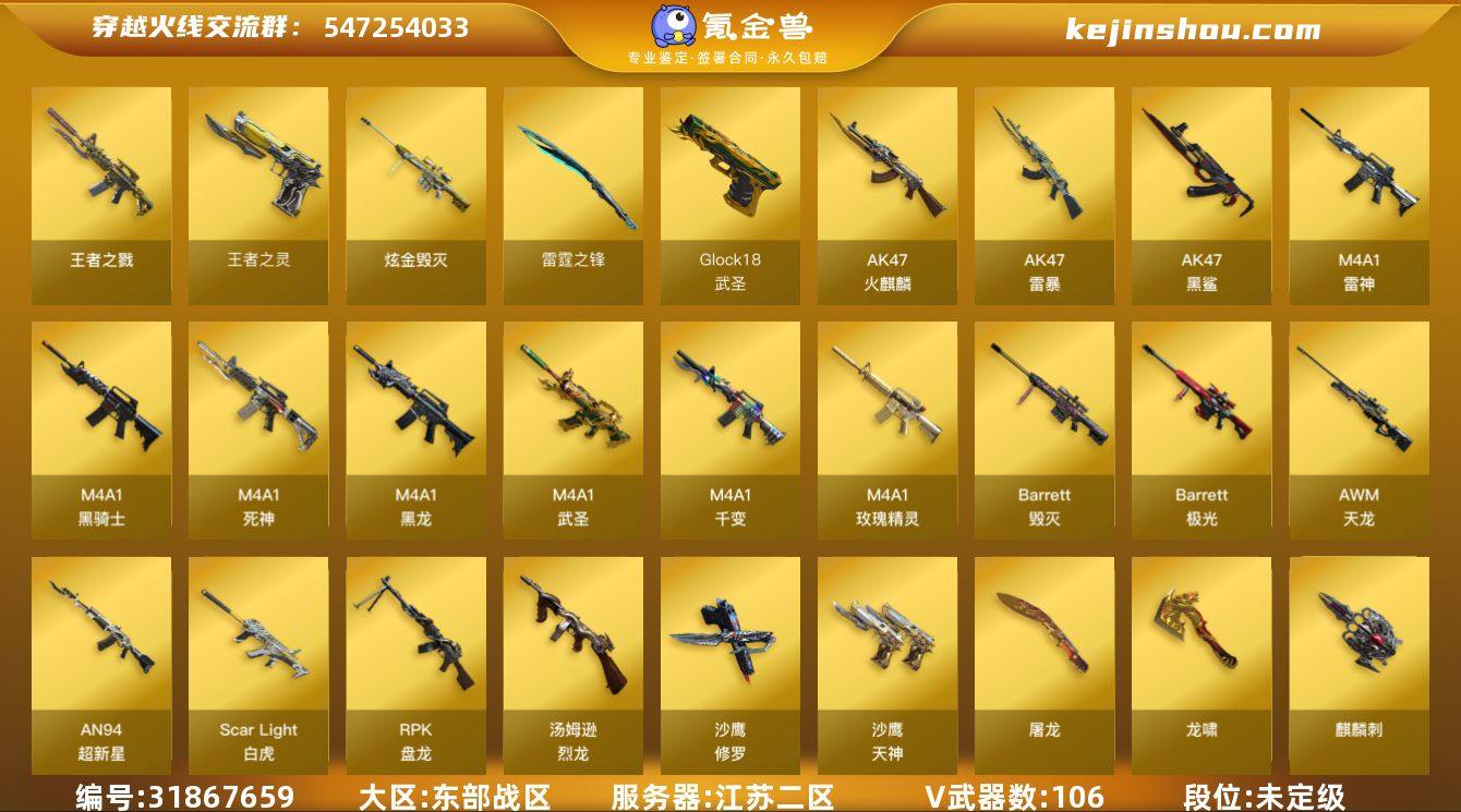 MCF881【112V 王者星神 ScarLight-白虎 6烈龙 6盘龙】【等级】102【区服】江苏二区【英雄角色】5【英雄武器】106【王者级武器】王者星神-觉醒版 王者之光-觉醒版 王者之灵 王者之戮【炫金级武器】炫金骑士 炫金毁灭【英雄级角色】审判者 葵 樱 春 鹰 团团【英雄级武器】Scar Light-白虎 沙鹰-天神 加特林-炼狱 AK-47-猩红传说 AK47-B-战士 高爆手雷-雷暴 烟雾弹-雷暴 闪光弹-雷暴 AK47-火麒麟 USP-雷暴 高爆手雷-雷暴 烟雾弹-雷暴 闪光弹-雷暴 AK47-雷暴 AK47-雷暴 高爆手雷-雷暴 烟雾弹-雷暴 闪光弹-雷暴 USP-雷暴 高爆手雷-雷暴 烟雾弹-雷暴 闪光弹-雷暴 沙鹰-天神 龙啸 龙啸 高爆手雷-雷暴 烟雾弹-雷暴 闪光弹-雷暴 高爆手雷-雷暴 烟雾弹-雷暴 闪光弹-雷暴 斩神刀-雷暴 高爆手雷-雷暴 烟雾弹-雷暴 闪光弹-雷暴 AK47-黑鲨 沙鹰-天神 雷霆之锋 高爆手雷-雷霆 烟雾弹-雷霆 闪光弹-雷霆 龙啸 沙鹰-修罗 沙鹰-天神 沙鹰-天神 沙鹰-天神 沙鹰-天神 RPK-盘龙 Barrett-极光 RPK-盘龙 RPK-盘龙 RPK-盘龙 M4A1-武圣 Glock18-武圣 龙啸 RPK-盘龙 AWM-天龙 M4A1-死神 M4A1-黑骑士 沙鹰-修罗 AK47-火麒麟 Barrett-毁灭 AN94-超新星 沙鹰-修罗 M4A1-玫瑰精灵 M4A1-千变 M4A1-千变 龙啸 AN94-超新星 RPK-盘龙 沙鹰-修罗 麒麟刺 麒麟刺 龙啸 屠龙 龙啸 AK47-火麒麟 M4A1-黑龙 擎天 AN94-超新星 汤姆逊-烈龙 麒麟刺 M4A1-武圣 汤姆逊-烈龙 屠龙 沙鹰-修罗 汤姆逊-烈龙 屠龙 屠龙 屠龙 屠龙 汤姆逊-烈龙 barrett-金色蔷薇 barrett-金色蔷薇 沙鹰-修罗 沙鹰-修罗 Barrett-毁灭 汤姆逊-烈龙 汤姆逊-烈龙 汤姆逊-烈龙 M4A1-雷神 屠龙 沙鹰-天神 汤姆逊-烈龙 沙鹰-修罗 加特林-炼狱 【挑战级武器】神罚