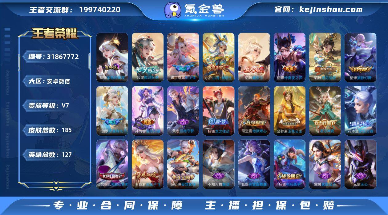貂蝉的FMVP,遇见胡璇,情限,仲夏夜之梦(金色也有),孙尚香因你闪耀,小乔年限,娜可露露前尘镜,伽罗织翼光辉,王昭君凤凰于飞,花木兰默契交锋,瑞麟志,水晶猎龙者,上官婉儿KPL,神器,妲己热情桑巴,公孙离玉兔公主;