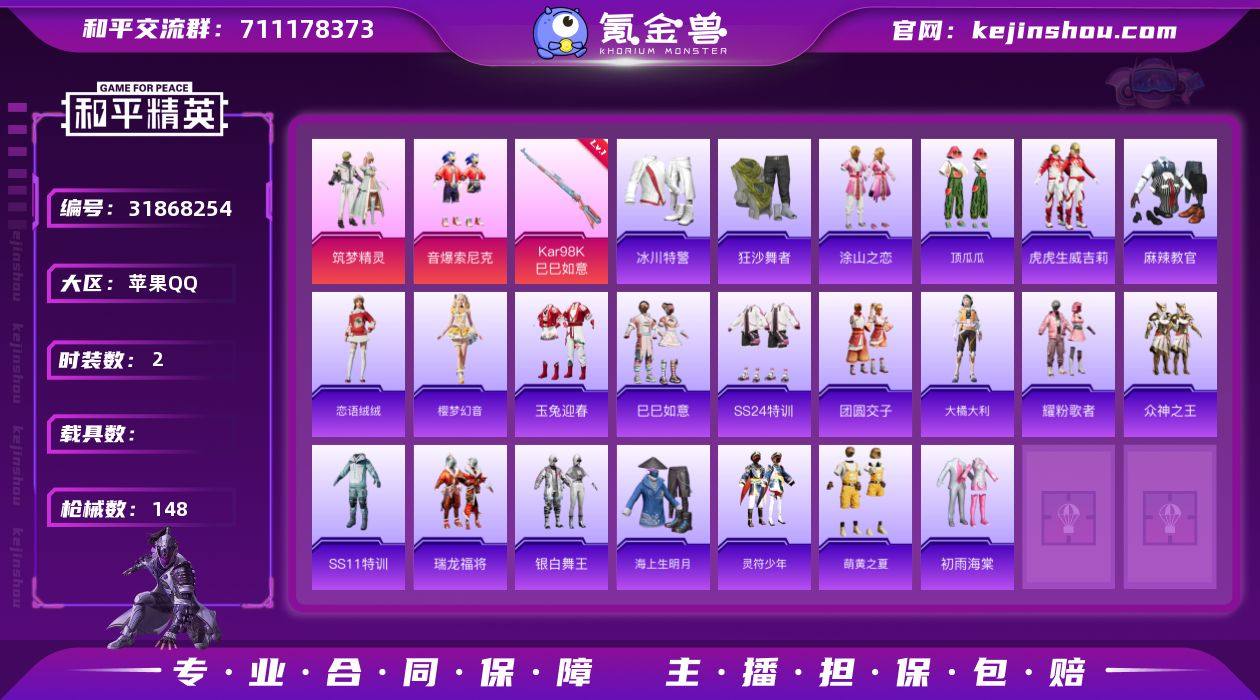 M1046569【素材号】苹果手Q-2粉装-2特效枪-110套装-148枪皮-5王牌印记-坚韧铂金Ⅳ-41913热力值【2粉装】音爆索尼克,筑梦精灵【2特效枪】Kar98K-巳巳如意[4级],DP-28-豹影疾电[5级]【2稀有】狂沙舞者,TJB战队服【7飞行器】光之冒险尾迹,红色滑翔尾迹,异域银装飞行器,破刃行动尾迹,粉色滑翔尾迹,炫彩糖果飞行器,星夜魔法师飞行翼【1头盔】夏日绵绵冰头盔【252其它衣服和枪皮】漫游都市,灼焰舞者,飞驰魅影,恋语绒绒,竞技达人朋克,SS16特训,时空追击者,炫彩糖果,薄荷星砂,吉莉礼服,SS11特训,大橘大利,绮丽涂鸦,元气之梦,探宝勇士,青春冒险家,SS17特训,SS34特训,青翼流星,萌鸡速递,SS31特训,潮流游乐家,春日漫步,破晓战魂,炫蓝之夏,空投萌叽,甜心亚梦,暗黑骑手,热血青春,暴风机械师,极地朋克,耀眼新星,夏日音浪,角色-无面战甲,SS36特训,红色运动,镭射皇者,海上生明月,旭日情侣,SS21特训,灵符少年,SS24特训,耀粉歌者,牛气冲天,角色-绯色魅影,异彩先驱,滨海假日,SS19特训,冰川特警,SS33特训,青涩时光,幻世战舞者,SS18特训,SS13特训,龙腾端午,玉兔迎春,SS12特训,橘黑制服,瑞龙福将,滨海厨神,水晶王族,极速竞梦,魅力单车,银白舞王,牛气满满,初雨海棠,白色伏地魔,霓虹极客,战术大师,爆裂葡萄,SS37特训,音速流光,SS20特训,虚音幻奏,白熊同盟,光之冒险,甜蜜熊情侣,巳巳如意,SS35特训,樱梦幻音,特种颜团子,SS32特训,霓虹街区,萌趣颜团子,格斗先锋,王牌教练,甜蜜告白,SS15特训,涂山之恋,团圆交子,萌黄之夏,竞技名士,长空猛禽,虎虎生威吉莉,SS14特训,蓝彩潮人,都市漫游者,众神之王,飞行日记,猛禽,野性战心,福星高照,柠萌假日,顶瓜瓜,麻辣教官,特训学院,S1897-飞驰魅影,汤姆逊-异彩先驱,AUG-青春冒险家,SLR-月影鸳鸯,燃点复合弓-罪夜之冕,SKS-青丘仙客,PKM-啾咪啾咪,ACE32-冰晶雪宝,M762-镭射皇者,UZI-墨染幽