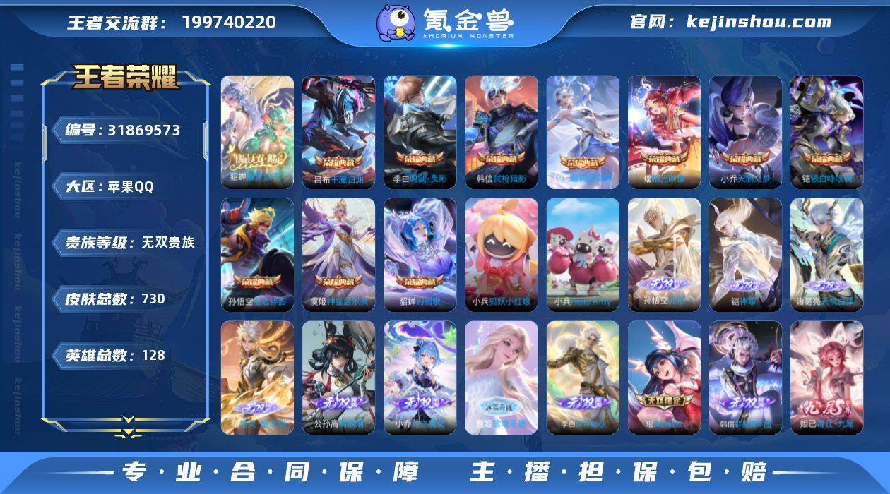 C-DD2556 苹果QQ 无双V10 730皮 10典藏11无双7星元【7.2W流光积分 狐妖小红娘/HelloKitty小兵 77按键4天幕】貂蝉珍品无双 7星元340限定125传说 巅峰1312 发育路33段 游走/对抗路29段 1.1W战力金标孙尚香 金标盾山 152幸运值 2232英雄碎片 575皮肤碎片 138蔷薇之心 2012星币 23印记 6荣耀印记 营地号:228772078 【珍品传说】怪盗基德,孙策时之奇旅,江户川柯南,器灵·落星盏,兔狲·蓬尾,黑崎一护,朽木白哉,酷洛米之心,大耳狗之梦, 【无 双】韩信群星魔术团,真我赫兹瑶,时之魔女,青丘·九尾,碎月剑心,离恨烟,甄姬雪境奇遇,器灵·螭龙剑,馥梦繁花,天机白泽,神罪,无相, 【荣耀典藏】全息碎影,鸣剑·曳影,天鹅之梦,银·白咏叹调,幻阙歌,弑枪猎影,神鉴启示录,拾光映像,最初的交响,千魇归渊, 【星元皮肤】金色仲夏夜,未来机甲,时之思念,云鹰彻晓,幻舞叠翠,破晓神光,游龙堇华, 【热门限定】愿照·众生和,愿照·岁时盈,愿照·千秋盛,愿照·山河定,愿照·九州拓,愿照·福禄聚,器灵·浮梦炉,逐花归海,落雪白狼,凤求凰,至尊宝,乘龙·问璇玑,乘龙·淬吴钩,乘龙·铭钟鼎,乘龙·聚宝船,乘龙·忆丹青,白虎志,青龙志,朱雀志,瑞麟志,玄武志,神威,虎魄,龙胆,烈魂,武圣,冰锋战神,千劫归真,天魔缭乱,夜都魔契,曦玄引女,曦玄引男,影龙天霄,琥珀纪元马超,琥珀纪元伽罗,琥珀纪元铠,超元猎域,如梦令男,异界灵契,如梦令女,零号·赤焰,深海之息,时雨天司,御风骁将,祈雪灵祝,奔雷神使,傲雪梅枪,天狼狩猎者,天狼运算者,天狼溯光者,天狼征服者,寅虎·赤拳,寅虎·瑞焰,寅虎·心曲,寅虎·展翼,寅虎·御盾,默契交锋女,逐梦之影,逐梦之翼,逐梦之音,逐梦之光,白晶晶,引擎之心,青春决赛季,前尘镜,淬星耀世,辉光之辰,无尽星芒,枫霜尽,时之彼端,时之奇旅,时之祈愿男,蜜橘之夏,岱宗,幽恒,飞衡,玄嵩,神奇女侠,冰霜恋舞曲,霸王别姬女,一生所爱,大圣娶亲,魔法小厨娘,暗影游猎,云端筑梦...