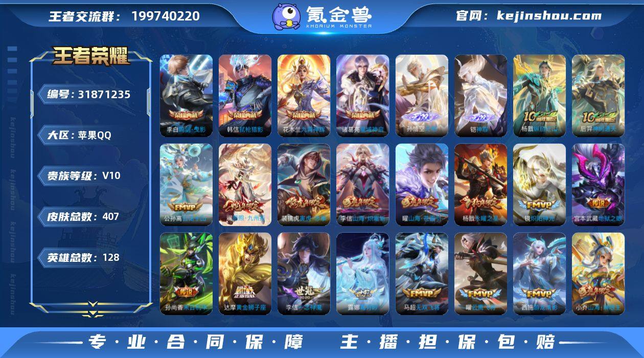 无二次-苹果Q-V10-最强王者段位-128英雄-407皮肤-4典藏皮肤-2无双-40传说-127史诗HZ26022506 【英雄全皮】:刘邦全皮,孙权全皮,鬼谷子全皮,敖隐全皮,蒙恬全皮,戈娅全皮,空空儿全皮,影全皮 【荣耀典藏】:李白鸣剑曳影,诸葛亮星域神启,花木兰九霄神辉,韩信弑枪猎影 【无双皮肤】:孙悟空无相,铠神罪 【传说皮肤】:杨戬纵目迁山,后羿神树通天,干将莫邪千山共赴,公孙离云诺千山,澜愿照九州拓,云缨幻光神枪,桑启鸣野蒿,艾琳觅芳踪,露娜霜月吟,伽罗炽翼辉光,孙悟空齐天大圣,小乔山海琳琅生,曜山海苍雷引,李信山海炽霜斩,吕布怒海麟威,李白诗剑行,百里守约碎云,孙尚香音你闪耀,马超无双飞将,孙策末日机甲,裴擒虎寅虎赤拳,赵云淬星耀世,西施游龙清影,周瑜音你心动,镜炽阳神光,虞姬启明星使,曜云鹰飞将,李信一念神魔,刘备时之恋人,貂蝉猫影幻舞,干将莫邪久胜战神,虞姬云霓雀翎,达摩黄金狮子座,花木兰冠军飞将,后羿黄金射手座,杨戬永曜之星,貂蝉仲夏夜之梦,孙尚香末日机甲,宫本武藏地狱之眼,狄仁杰超时空战士 【限定皮肤】:白起狰,蒙犽顽岩魄,蔡文姬夏日便利店,虞姬夏日便利店,姜子牙天穹之誓,李白谪仙醉月,狄仁杰阴阳师,虞姬凯尔特女王,小乔山海琳琅生,赵云皇家上将,嬴政优雅恋人,孙尚香蔷薇恋人,庄周高山流水,钟无艳超时空战士,孙膑妖精王,扁鹊炼金王,芈月白晶晶,芈月幻夜卜梦,吕布猎兽之王,元歌无心,甄姬落雪兰心,曹操烛龙,马可波罗山海玄木吟,狄仁杰魔术师,狄仁杰万华元夜,达摩沙漠行僧,项羽海滩派对,关羽冰锋战神,程咬金演武夺筹,刘邦夺宝奇兵,韩信飞衡,韩信傲雪梅枪,亚瑟潮玩骑士王,孙悟空至尊宝,孙悟空齐天大圣,后羿辉光之辰,李元芳银河之约,李元芳云中旅人,虞姬启明星使,杨玉环遇见飞天,杨戬永曜之星,太乙真人饕餮...
