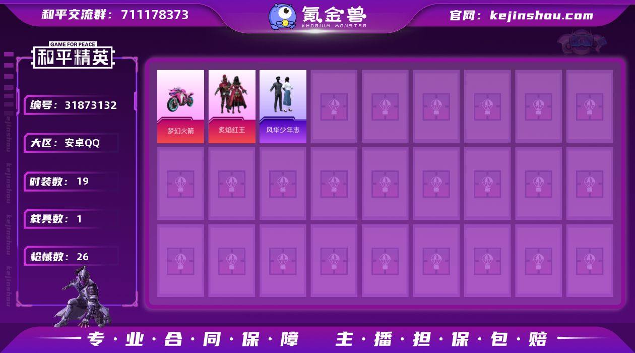 M1045595【捡漏推荐1载具1粉装】安卓Q-1载具1粉装1热门19套装26枪皮 8412热力值 历史荣耀皇冠Ⅲ 【1载具】 双人摩托梦幻火箭 【1粉装】 炙焰红王 【1热门】 风华少年志 【1飞行器】 梦幻火箭飞行器 营地ID:913677410