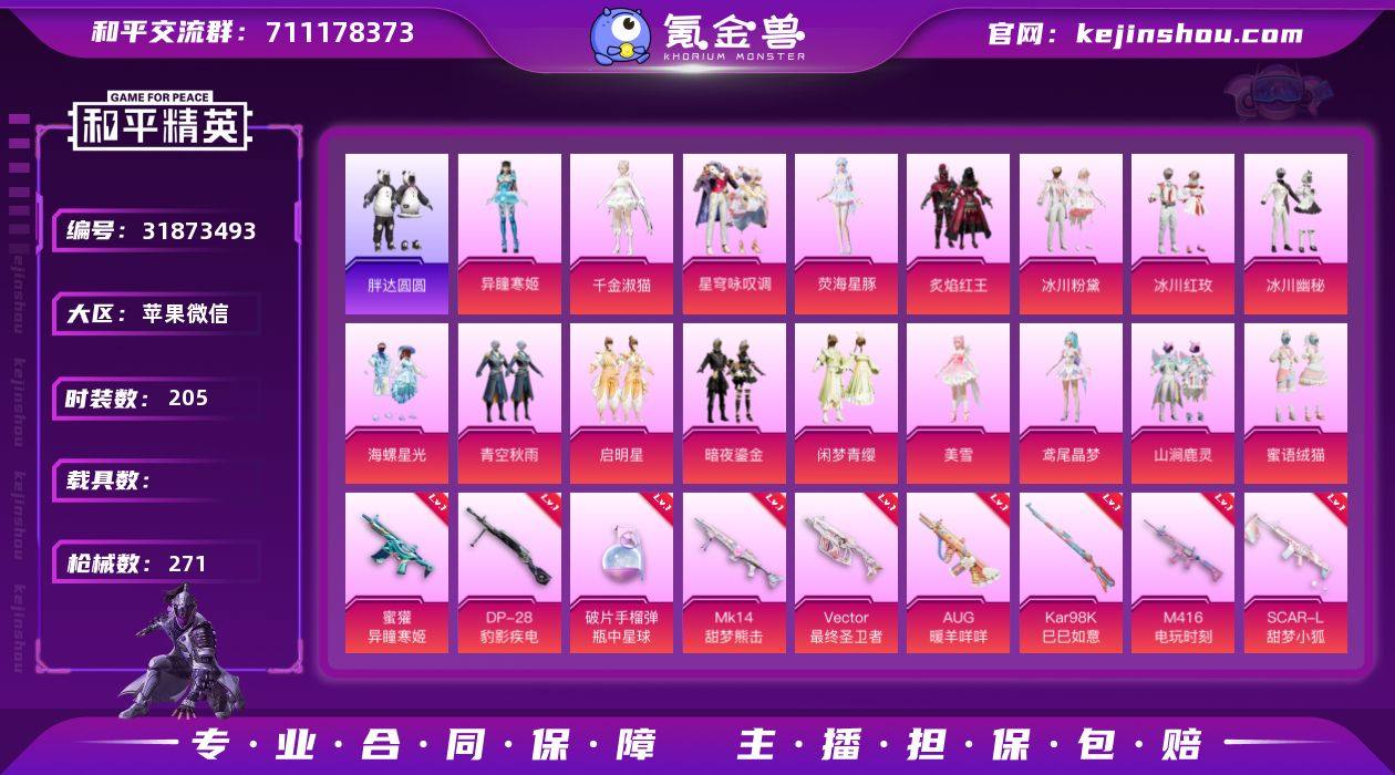 苹果 手Q-12粉装-7特效枪-3载具-4粉色飞行器-68953热力值-12王牌印记-181套装-198枪皮 【热门品类】:套装-深海小丑鱼,套装-小丑鱼,套装-奇异狩猎者,角色-军刀雅典娜,角色-8号机,角色-Mark.06 【粉色套装】:粉装-未来战士,角色-洛天依,角色-复仇流浪者,角色-脉冲星,角色-光极星,粉装-金丰海韵,角色-萨利娅,角色-女娲灵识,角色-智耀战神,角色-天龙座 紫龙,角色-冷漠罗丽 【粉色枪皮等级】:UMP45-量子极限(五级),P90-魔童闹海 敖丙(三级),Kar98K-巳巳如意(五级),DP-28-千金淑猫(六级),DP-28-豹影疾电(五级),MG3-洛神天依(五级),MG-36-幻彩电音(七级) 【粉色载具】:仰望U7(阿盖尔紫),宝马M4(圣保罗黄),冰绡玉鳞 【粉色枪皮】:UMP45-量子极限,P90-魔童闹海 敖丙,Kar98K-巳巳如意,DP-28-千金淑猫,DP-28-豹影疾电,MG3-洛神天依,MG-36-幻彩电音 【粉色飞行器】:冠军兔兔飞行器,灵珠游龙飞行器 【粉色降落伞】:未来战士降落伞,星之彼岸降落伞,洛神天依降落伞,环太平洋降落伞,千面幻镜降落伞,旋转彩虹降落伞,繁龙极客降落伞,创世·救赎降落伞,千金淑猫降落伞,鬼刀降落伞,智耀战神降落伞,幻彩电音降落伞,荧海星豚降落伞,绯穹魔姬降落伞,无垠阁降落伞,魔童闹海 敖丙降落伞,极意拳锋降落伞,炫彩糖果降落伞 【稀有套装】:套装-巳巳如意,套装-雪国风尚,套装-雏菊兔兔,套装-萝兰蝴蝶,套装-小熊娃娃,套装-糖糖葫芦,套装-青团波波,套装-棉花软糖,角色-都市丽猫,角色-摩登魅猫,套装-燕燕于飞,套装-鱼渊荷华,角色-风玲,角色-糖霜甜心,套装-粉恋花,套装-紫幽梦,套装-蓝冰羽,角色-猎影月神,套装-霓虹热舞,套装-彩虹兔,套装-云朵鹅,套装-雪绒豹,角色-乐音,套装-蓝海鲸歌,角色-夜瞳黯灵,套装-朱霞炽焰,套装-凌霄紫焰,套装-擎苍青焰,角色-敖闰,角...
