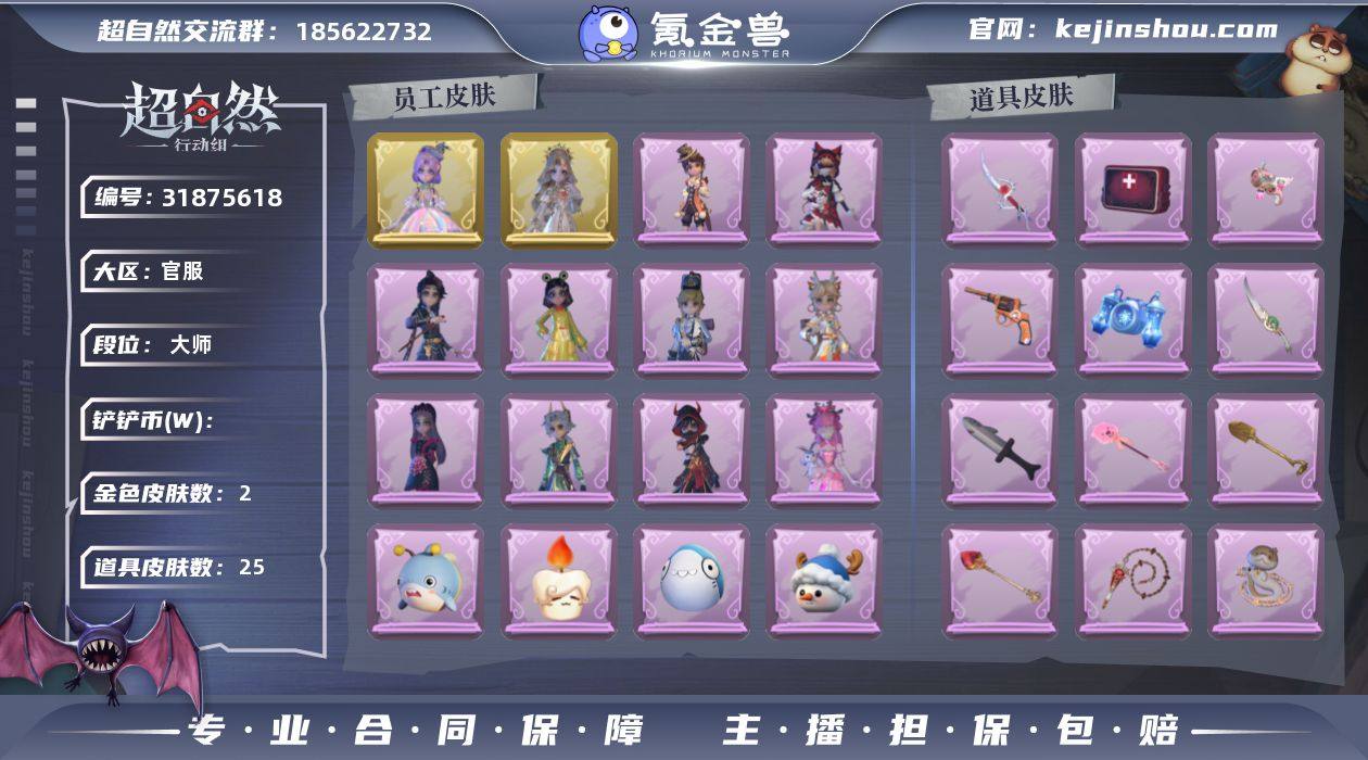 氪条1500,有赤练,微微安金皮,小黄金皮,道具基本每个都有皮肤