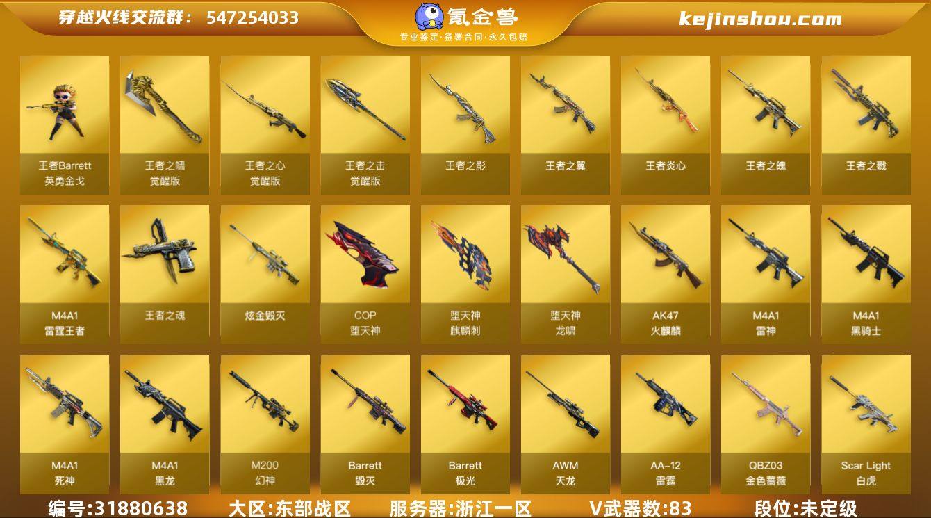 MCF789【83V 幻神 竞技荣光套 荣耀之魄雷神 荣耀之锋屠龙X2 天龙传奇白鲨X2 火麒麟传奇EV 雷神传奇N9 雷神虎将 雷神白鲨CFPLS14冠军 】【等级】102【区服】浙江一区【英雄角色】4【英雄武器】83【王者级武器】Barrett-雷霆王者-觉醒版 雷霆王者之锋-觉醒版 COP357-雷霆王者-觉醒版 高爆手雷-雷霆王者 高爆手雷-雷霆王者 烟雾弹-雷霆王者-觉醒版 高爆手雷-雷霆王者 M4A1-雷霆王者 闪光弹-雷霆王者-觉醒版 王者之决-觉醒版 王者之魄-觉醒版 王者之啸-觉醒版 王者炎心 王者之翼 王者之戮 王者之心-觉醒版 王者之击-觉醒版 王者之影 王者之魂 王者之魄 【炫金级武器】炫金毁灭 炫金毁灭 【英雄级角色】葵 迷迭香 电竞教官-云悠悠 晴雅 【英雄级武器】龙啸-烈火龙威 无影-神兵利器 炽芒蝶刃 AK47-火麒麟 柯尔特-电竞装甲 闪光弹-竞技荣光 柯尔特-竞技荣光 高爆手雷-竞技荣光 擎天-竞技荣光 烟雾弹-竞技荣光 M200-竞技荣光 高爆手雷-竞技荣光 闪光弹-竞技荣光 M200-幻神 Scar Light-白虎 QBZ03-金色蔷薇 汤姆逊-烈龙 AA-12-雷霆 M4A1-雷神 AK-47-猩红传说 烟雾弹-堕天神 高爆手雷-堕天神 闪光弹-堕天神 烟雾弹-堕天神 高爆手雷-堕天神 闪光弹-堕天神 龙啸-堕天神 麒麟刺-堕天神 烟雾弹-堕天神 高爆手雷-堕天神 闪光弹-堕天神 COP-堕天神 烟雾弹-堕天神 高爆手雷-堕天神 闪光弹-堕天神 M4A1-黑骑士 9A91-烈火 Barrett-极光 M4A1-黑龙 M4A1-雷神 M4A1-黑骑士 M4A1-黑龙 barrett-金色蔷薇 RPK-盘龙 沙鹰-修罗 Barrett-极光 M4A1-死神 M4A1-死神 M4A1-死神 M4A1-死神 M4A1-死神 M4A1-死神 沙鹰-修罗 屠龙 沙鹰-修罗 AWM-天龙 AK47-火麒麟 沙鹰-天神 Barrett-毁灭 M4A1-黑龙 沙鹰-修罗 屠龙 【挑战级武器】神圣爆裂者-末日III 激光毁