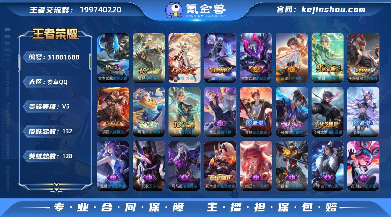 【WZ180952】安卓Q-V5-最强王者段位-128英雄-132皮肤-7传说-43史诗【英雄全皮】:孙权全皮,敖隐全皮【传说皮肤】:后羿神树通天,澜愿照九州拓,云缨幻光神枪,桑启鸣野蒿,澜逐花归海,干将莫邪久胜战神,宫本武藏地狱之眼【限定皮肤】:蒙犽顽岩魄,姜子牙天穹之誓,狄仁杰阴阳师,赵云皇家上将,元歌无心,马可波罗暗影游猎,项羽海滩派对,孙悟空至尊宝,百里玄策原初追逐者,鲁班大师探海日志,鬼谷子天穹祈灯,沈梦溪龙舞盛年,刘邦剑破天穹,程咬金群星魔术团,周瑜熔金海岸【年限皮肤】:澜愿照九州拓【赛季限定】:鲁班大师探海日志,鬼谷子天穹祈灯,刘邦剑破天穹,姜子牙天穹之誓,东皇太一噬灭天穹,太乙真人谧流熔炉,钟馗虚灵犬护,甄姬逆浪荇歌,亚瑟荣光之誓,百里玄策原初追逐者,牛魔星界战将,项羽九幽镇关【战令限定】:马可波罗暗影游猎,孙膑茶境仙,马超访茗客,周瑜线条小狗【史诗皮肤】:周瑜线条小狗,项羽九幽镇关,女娲万灵启世,黄忠百相守梦,狂铁龙之律动,阿轲化蝶舞,弈星万物之道,孙膑茶境仙,牛魔星界战将,蒙犽顽岩魄,镜玫瑰异探,元歌无心,貂蝉唤灵魅影,司马懿暗渊魔法,西施诗语江南,百里玄策原初追逐者,马可波罗暗影游猎,狄仁杰鹰眼统帅,大乔猫狗日记,阿轲节奏热浪,程咬金功夫厨神,李元芳逐浪之夏,蔡文姬舞动绿茵,百里守约特工魅影,安琪拉心灵骇客,雅典娜冰冠公主,亚瑟心灵战警,诸葛亮黄金分割率,小乔缤纷独角兽,夏侯惇乘风破浪,刘邦德古拉伯爵,花木兰水晶猎龙者,孙悟空至尊宝,吕布末日机甲,李白千年之狐,吕布圣诞狂欢,妲己女仆咖啡,妲己魅力维加斯,孙尚香水果甜心,宫本武藏鬼剑武藏,廉颇地狱岩魂,甄姬冰雪圆舞曲,赵云未来纪元,赵云皇家上将【其他皮肤】:兰陵王雾影缉谜,虞姬溯影追猎,艾琳鹤鸣心笺,孙权径山谋武,亚瑟荣光之誓,哪...