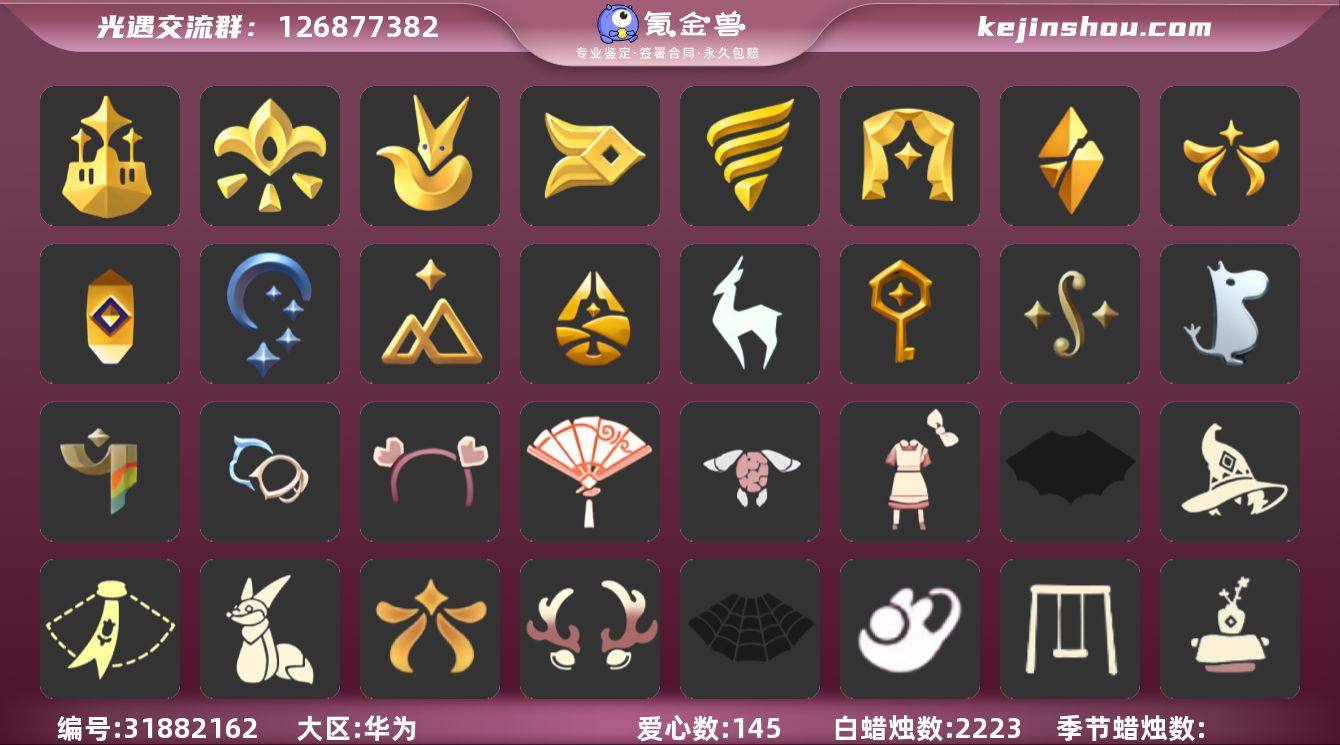 蜡烛数量:757 爱心数量:297 翼数量:205 圣岛季,预言季,梦想季,表演季,破晓季,九色鹿季 冥龙斗篷,遥鲲长斗,黑暗花斗篷,水母斗篷,遥鲲短斗篷,棉领斗篷,宽肩斗篷,燕尾斗篷,半边围巾斗篷,遥鲲斗篷,二级毕业礼斗篷,紫金流苏斗篷,红绒斗篷,白绒斗篷,花瓣斗篷,紫斗篷,贵族红绒斗篷,紫色伞纹斗篷,紫色毛领斗篷,粉色花瓣斗篷,蝴蝶斗篷,紫金斗篷,鲲斗,蟑螂斗,白鸟斗,黑金,白金,红金,绿芽,圣诞斗,樱花斗 郡主发型,冥龙长辫,皇冠水母头,遥鲲长辫,飒爽束发,斜刘海发型,刘海短发,公主头,雪人发型,脏辫发型,水母头发型,秃头发型,总裁发型,长发脏辫,白枭,公主,蝴蝶结,正太,书虫,高马尾,粗辫,虚荣,花环,若笠,明制,樱花,猫耳,女巫,圣诞帽,虎狮 武士裤,白棉裤,搓澡巾,灯笼裤,雪人裤,猫猫裤,遥鲲裙 牛头面具,暗花面具,黄眉企鹅面具,花纹面具,狮子头面具,凤凰面具,白鸟面具,金色面纱,阿努比斯,红狐狸,黄鼠狼,矮人面具,黑脸,牛头,虎头,龙头,兔头 红耳机 乐器,冥龙号角,集结季火炬,蓝色手碟,水管,相机,雨伞,笛子,吉他,排箫,火盆,烟花棒,气球,礼炮,坐垫 蝴蝶发饰,明制帽,草帽,羽毛装饰,蝴蝶结-头饰,太阳帽,生日帽 九色鹿季节项链,破晓季节项链,螃蟹肩饰,表演季节项链,黑色领结,圣诞领结 鹿角,秋千,橘子,兔子,枯角 卖家说:还有三个小号,解锁传送和背背(没记错的话),其中一个是永无(个子不高,衣服不多) 小号1:白蜡124红蜡24心35 永无:白蜡197红蜡21心22 小号3:白蜡10心7(之前的数据,可能有偏差)