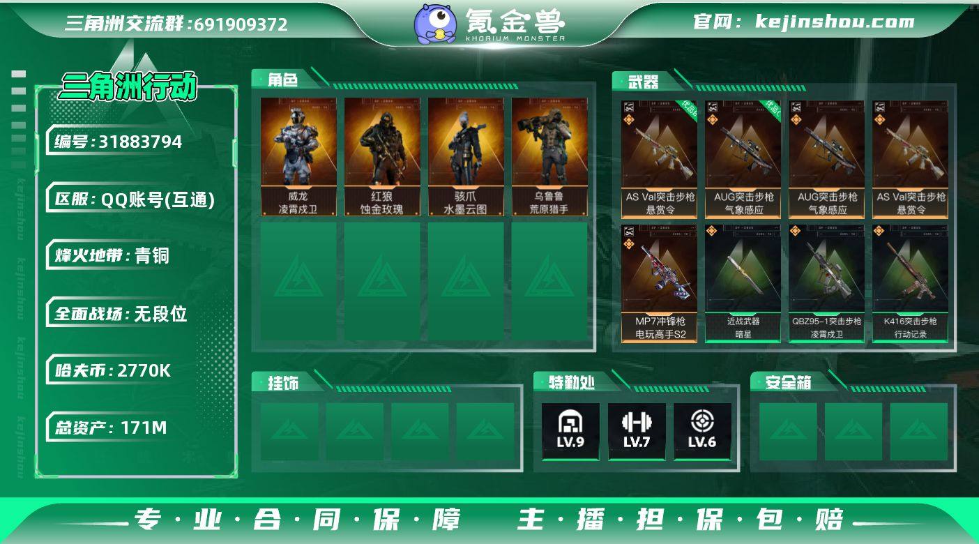 【4025】总资产(M):171M/哈夫币(K):2770K/哈夫币(K):2770K/传说枪皮数:11/全面战场等级:1_段位:无段位/烽火地带等级:60_段位:青铜/红狼-蚀金玫瑰/骇爪-水墨云图/威龙-凌霄戍卫/乌鲁鲁-荒原猎手/近战-暗星/近战-黑鹰/AUG突击步枪-气象感应/AS Val突击步枪-悬赏令/MP7冲锋枪-电玩高手S2/优品C典藏武器外观-AUG突击步枪-气象感应/优品B典藏武器外观-AS Val突击步枪-悬赏令/优品B典藏武器外观-MP7冲锋枪-电玩高手S2/M4A1突击步枪-蚀金玫瑰/QBZ95-1突击步枪-凌霄戍卫/K416突击步枪-行动记录/SCAR-H战斗步枪-水墨云图/腾龙突击步枪-万金泪冠/勇士冲锋枪-万金泪冠/M14射手步枪-蛮荒/AWM狙击步枪-万金泪冠/K416突击步枪-腊梅/K416突击步枪-阿萨拉特攻/K416突击步枪-缄默情歌/G3战斗步枪-哈夫克警备/K437突击步枪-丛林谍踪/KC17突击步枪-缄默情歌/SMG45冲锋枪-阿萨拉特攻/SR-3M紧凑突击步枪-开工大吉/勇士冲锋枪-丛林谍踪/MP7冲锋枪-六套之力/S12K霰弹枪-缄默情歌/M249轻机枪-丛林谍踪/M250通用机枪-囚徒/VSS射手步枪-丛林谍踪/SVD狙击步枪-阿萨拉工艺/M14射手步枪-工业狂潮/M14射手步枪-航天庆典/沙漠之鹰-曙光/PKM通用机枪-精湛工艺/K416突击步枪-一帆风顺/SG552突击步枪-马年新春/ AK-12突击步枪-马年新春/CAR-15突击步枪-来财/KC17突击步枪-来财/Vector冲锋枪-先锋/SMG-45冲锋枪-行动开启/SR-3M紧凑突击步枪-马年新春/勇士冲锋枪-冰天雪地/M249轻机枪-冰天雪地/Mini-14射手步枪-来财/SV-98狙击步枪-星链科技/SV-98狙击步枪-哈夫克航天/SV-98狙击步枪-精英联盟/G18-星链科技/G18-哈夫克航天/SMG-45冲锋枪-蝴蝶/AKS-74U突击步枪-监察/CAR-15突击步枪-监察/S12K霰弹枪-监察/R93狙击步枪-监察/G3战斗步枪-凶兽/K437突击步枪-凶兽/SKS射手步枪-凶兽/MP5冲锋枪-古铜/S12K霰弹枪-古铜/M4A1突击步枪-粉色涂装/M4A1突击...