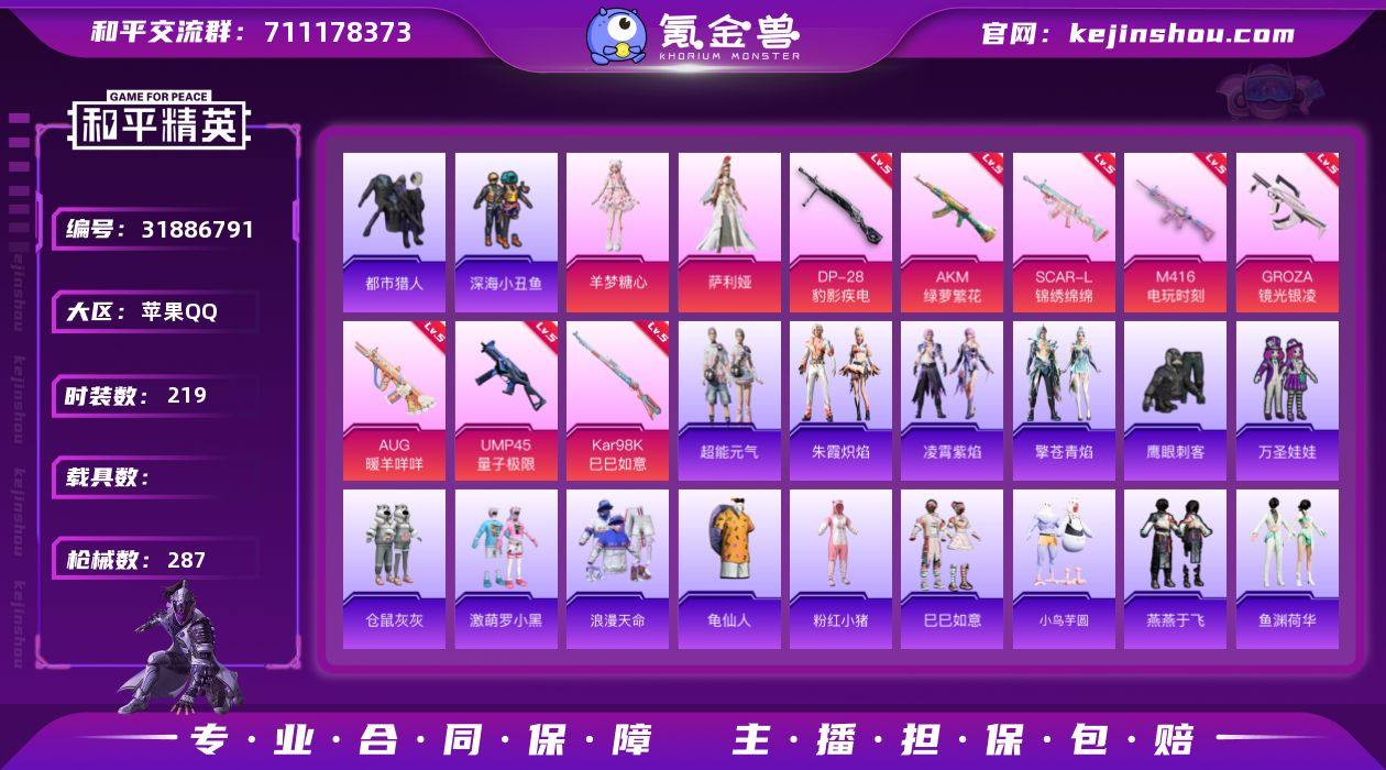【AZH2884】苹果 手Q【19印记 都市羊梦糖心 深海小丑鱼浪漫天命 小鸟芋圆元气发射仓鼠灰灰】2粉装-15特效枪-0载具-3粉色飞行器-84950热力值-19王牌印记-219套装-287枪皮 【热门品类】:套装-浪漫天命,套装-都市猎人,套装-深海小丑鱼,套装-龟仙人,套装-粉红小猪 【粉色套装】:角色-萨利娅,角色-羊梦糖心 【粉色枪皮等级】:AKM-绿萝繁花(五级),SCAR-L-锦绣绵绵(五级),M416-电玩时刻(五级),GROZA-镜光银凌(五级),AUG-暖羊咩咩(五级),ACE32-萌骑漫游(三级),UMP45-量子极限(五级),UMP45-萌骑冒险(二级),AKS-74U-森灵之息(五级),Kar98K-巳巳如意(五级),Mk14-福马献瑞(五级),AA12-G-萌骑幻想(三级),DP-28-豹影疾电(五级),PKM-萌骑夺宝(二级),破片手榴弹-招财进宝(五级) 【粉色枪皮】:AKM-绿萝繁花,SCAR-L-锦绣绵绵,M416-电玩时刻,GROZA-镜光银凌,AUG-暖羊咩咩,ACE32-萌骑漫游,UMP45-量子极限,UMP45-萌骑冒险,AKS-74U-森灵之息,Kar98K-巳巳如意,Mk14-福马献瑞,AA12-G-萌骑幻想,DP-28-豹影疾电,PKM-萌骑夺宝,破片手榴弹-招财进宝 【粉色飞行器】:炫彩糖果飞行器,极意拳锋飞行器 【粉色降落伞】:绝对恒星降落伞,星之彼岸降落伞,筑梦精灵降落伞,莲影清波降落伞,精灵梦叶罗丽降落伞,炫彩糖果降落伞 【稀有套装】:套装-龟仙人,套装-巳巳如意,套装-小鸟芋圆,套装-超能元气,套装-雪国风尚,套装-炫彩糖果,套装-马上有钱,套装-燕燕于飞,套装-鱼渊荷华,角色-海琴烟,套装-旋风灵鼠,套装-极速光影,套装-朱霞炽焰,套装-凌霄紫焰,套装-擎苍青焰,套装-雨过天青,套装-红釉青花 【稀有枪皮】:AUG-冰晶雪宝,AKM-夜灯,AKM-彩虹符号,AKM-影袭,AKM-星之彼岸,AKM-江南烟雨,AKM-破晓战魂,AKM-筑梦精灵,AKM-缤纷海域,AKM-萌趣颜团子,AKM-虎虎生威,AKM-霓虹街区,AKM-龙...