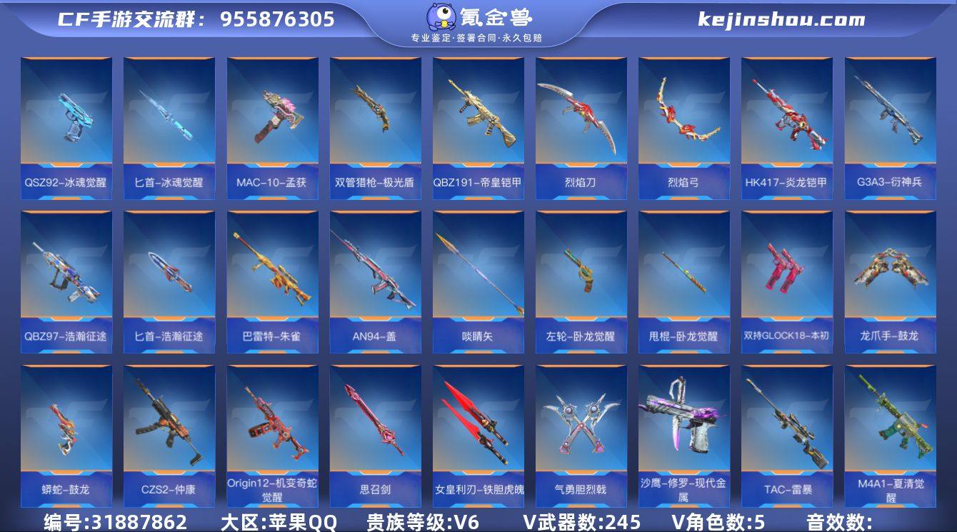 TZ2858【V6 250V 271金V 王者之影/尊/心/兽/M4A1仲达 王者幻神 TAC慈 王者之神+冰皮 M12S雷霆王者+冰皮】【等级】128【区服】手Q-苹果【金角色数】5【金武器数】245【金V角色】瞳 炽天使-X 零-新生 祝融夫人 九安-X【金V武器】AK47-天使 马来剑-毁灭 AK47-无影 巴雷特-毁灭 AK47-雷麒麟 AK47-心动次元觉醒 屠龙 巴雷特-极光 M4A1-死神 巴雷特-毁灭 铁锹-孟德 双持尼泊尔-亚龙 M4A1-雷神 RPK-盘龙 马来剑-毁灭 地狱烈炎 龙啸 AK47-血武士 5-极光 KSG-天蓬元帅 AK47-华夏传说 蟒蛇-鼓龙 白骨利刃 沙鹰-修罗 燃烧弹-黑骑士 CZS2-善财童子 双持沙鹰-金银双煞 血月 尼泊尔-机械纪元 柯尔特-仲达 M4A1-运输船 AK47-死神 火麒麟手雷 M12S-雷霆 火麒麟烟雾弹 M4A1-堕天神 黑骑士手雷 M4A1-海骑士 血月 沙鹰-火麒麟 SCAR-探星者 QBZ03-死神 黑武士手雷 毁灭征服者-超越Max AK47-火麒麟 M4A1-黑龙 M4A1-千变 TAC-晴舞 燃烧弹-黑骑士 左轮-黑武士 汤姆逊-烈龙 47-鼓龙 屠龙 47-云舞 98K-星神 M4A1-玫瑰精灵 QBZ97-浩瀚征途 QSZ92-华夏传说 SCAR-印刷术 AK47-破空冰刃 擎天觉醒 M4A1-太白诗仙 USP-太白诗仙 M4A1-猎神 屠龙 M4A1-黑骑士 太白诗仙扇 QBZ191-金甲虎啸觉醒 MR1-龙吟惊沧海 M4A1-雷神 98K-黑骑士 剑齿虎-炫彩 QBB95-再战涿鹿 AK47-塔罗牌觉醒 死神闪光弹 蝴蝶刀-天神 丛林匕首-庆龙觉醒 AN94-赳赳秦师 AWM-游骑兵 手雷-竞界荣光 CZ75-策 死神手雷 81式-光明之神 M4A1-夏清觉醒 死神烟雾弹 AWM-天龙 23-双脊龙 M200-幻神 高爆手雷-雷暴 高爆手雷-无限 沙鹰-无影 雷神手雷 雷神闪光弹 雷神烟雾弹 气勇胆烈戟 火麒麟手雷 火麒麟闪光弹 黑武士闪光弹 黑武士闪光弹 M4A