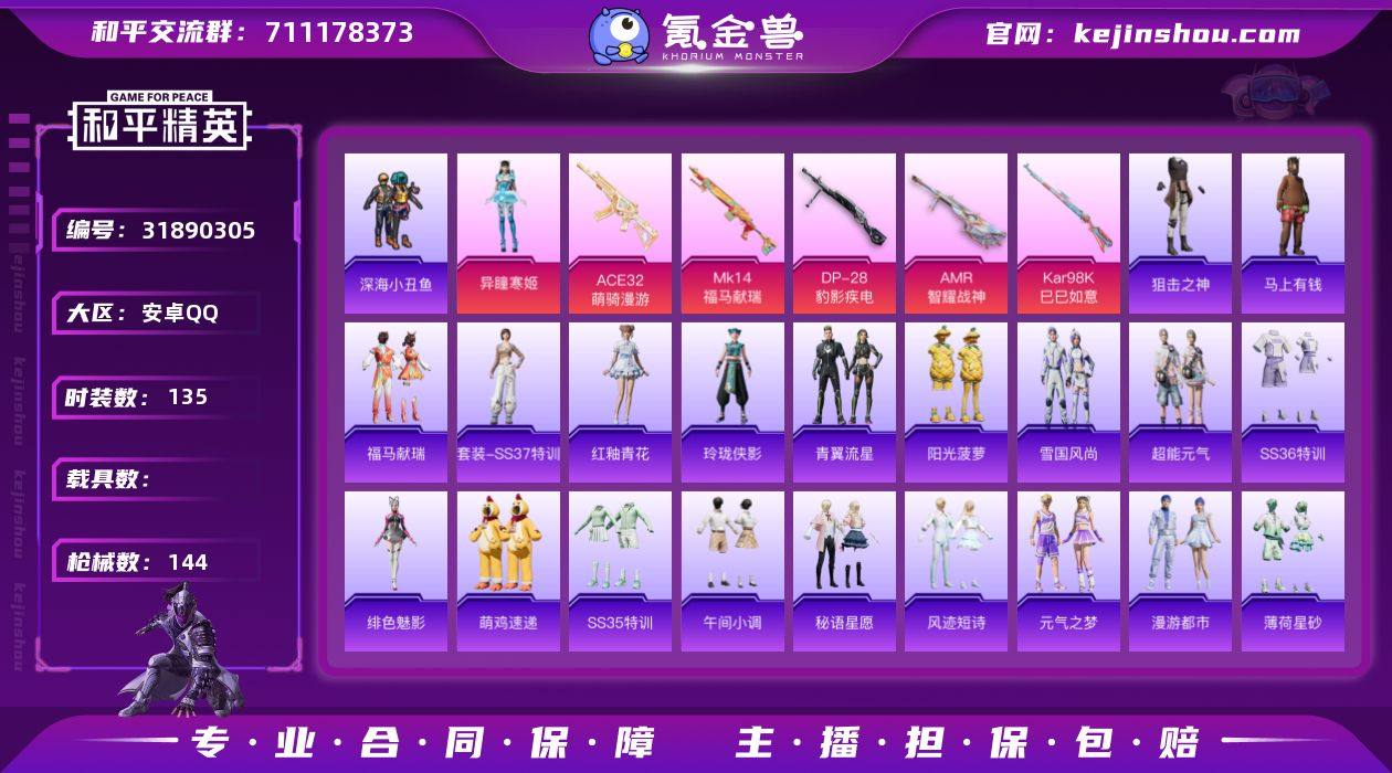 【0载具 5特效枪 1粉装 144枪皮 135套装】4印记/3.8万热力值/47级收藏家/套装-浪漫天命,套装-沙漠毒蛇,套装-深海小丑鱼,角色-异瞳寒姬/5升级枪:ACE32-萌骑漫游,AMR-智耀战神,Kar98K-巳巳如意,Mk14-福马献瑞,DP-28-豹影疾电/6飞行器:鸡智如我飞行器,狂鲨锋刃飞行器,登顶巅峰飞行器,马上有福飞行器,异域银装飞行器,炫彩糖果飞行器173993266x,编号:LYZRC89