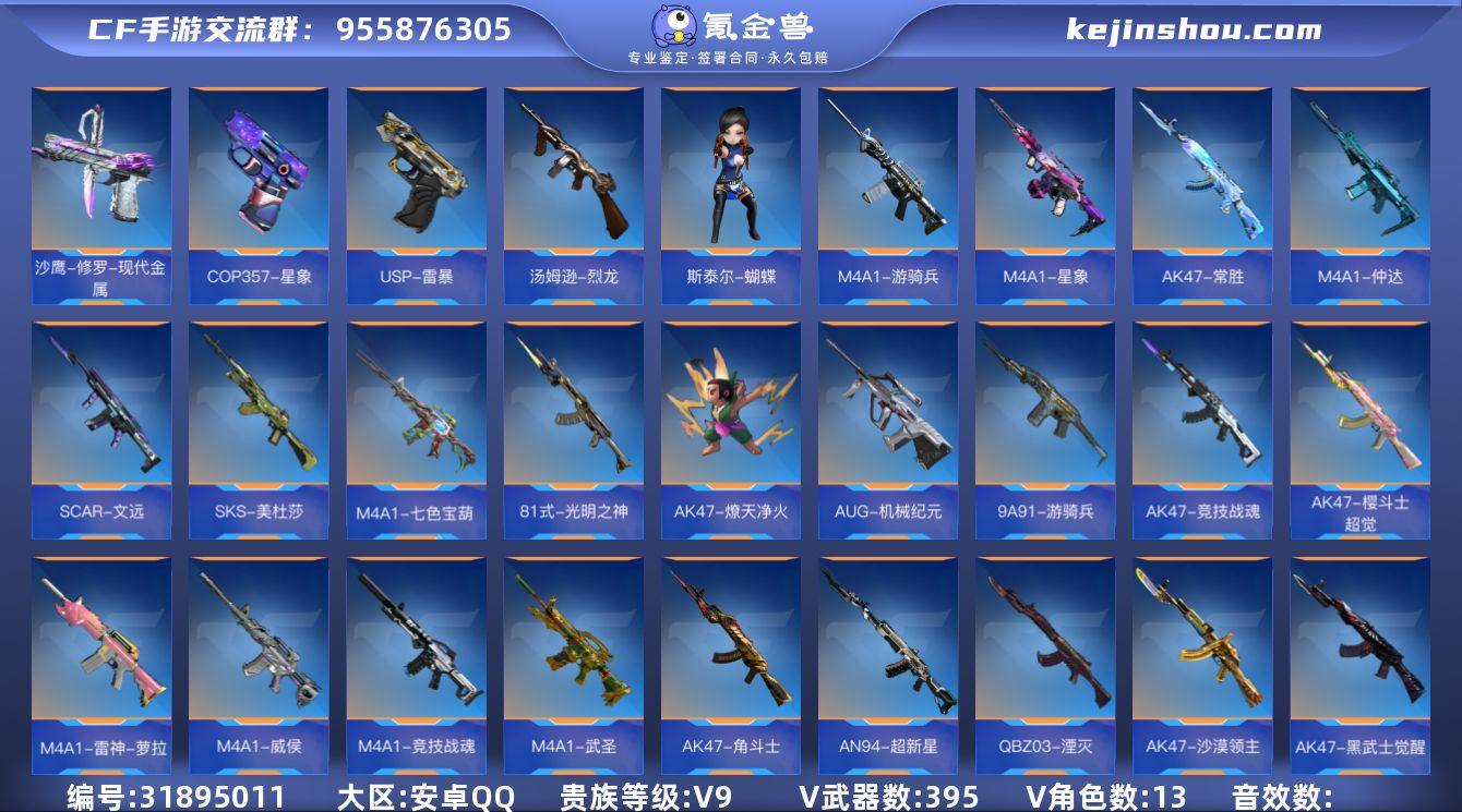 【FC-YK8UD4】【6至尊3同框2王锋-星象-常胜套-威侯套-七色宝葫黑耀-仲达-游骑兵-坦克堡垒-虹儿晴雅蝴蝶】手Q-安卓,等级158,VIP0,V武器数:395 ,V角色数:13 【人物角色】晴雅,蝴蝶,关小雨,关小雨,关小雨,瞳,樱,幽灵刀锋-觉醒,大老师,葵,铁骑,幻影,猎狐者,斯沃特,秦师,云悠悠-心动起点,雅典娜,零-水下丽影,零-水下丽影, 【王者武器】王者之誉,王者之兽,唐刀-华夏传说,王者之蝶,王者之势闪光弹,王者之势手雷,王者之心手雷,王者之翼手雷,王者之心烟雾弹,王者之心闪光弹,王者之翼闪光弹,王者之影闪光弹,王者之影闪光弹,王者之影闪光弹,王者之影烟雾弹,王者之影烟雾弹,王者之势烟雾弹,王者之翼烟雾弹,王者之翼烟雾弹,王者之心,王者之心,王者之影,王者之翼,王者之势,王者之光,王者之光,王者之魂,王者之轮,王者之电,王者之锋,王者之锋,王者之啸,王者之刺,王者之击,王者之击,王者之烈,王者之神,王者之狱, 【带V枪械】王者之势手雷-冰霜奇迹,MR1-龙吟惊沧海-千变,加特林-炼狱-怒魔,加特林-炼狱-怒魔,王者之势闪光弹-冰霜奇迹,AK47-火麒麟-暗月,MK5-机械纪元-蚀刻战甲,AK47-沙漠领主-邪神,王者之势烟雾弹-冰霜奇迹,双持斯泰尔-天使-血翼,双持斯泰尔-天使-血翼,双持斯泰尔-天使-血翼,双持斯泰尔-天使-血翼,双持斯泰尔-天使-血翼,CZS2-善财童子-千变,M4A1-七色宝葫,M4A1-仲达,AK47-竞技战魂-CFML2021,M4A1-雷神-萝拉,沙鹰-修罗-能量核心,沙鹰-修罗-能量核心,沙鹰-修罗-能量核心,M4A1-威侯,M4A1-星象,M4A1-竞技战魂,M4A1-竞技战魂,沙鹰-修罗-不屈老兵,沙鹰-修罗-不屈老兵,M4A1-武圣,沙鹰-火麒麟-Pro Max,M4A1-游骑兵,M4A1-游骑兵,M4A1-死神,M4A1-死神,M4A1-死神,M4A1-黑龙,M4A1-黑骑士,M4A1-雷神,M4A1-雷神,M4A1-雷神,沙...
