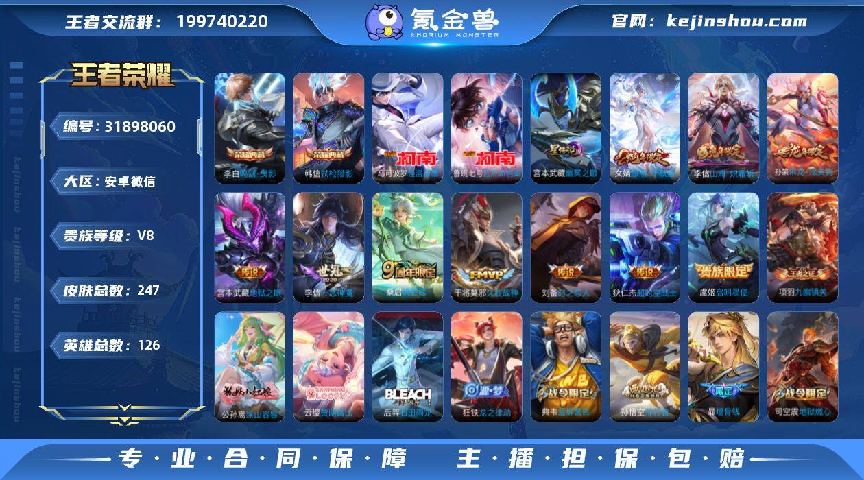 ZJ12277 安卓微信 V8 246皮 2典藏2珍品传说2星元 93限定10传说 7按键1天幕 对抗路33段 打野29段 全能高手 123幸运值 5荣耀印记 923英雄碎片 162皮肤碎片 营地号:1775692019【珍品传说】怪盗基德,江户川柯南, 【荣耀典藏】鸣剑·曳影,弑枪猎影, 【星元皮肤】幽冥之眼,时之思念, 【热门限定】愿照·千秋盛,乘龙·淬吴钩,乘龙·聚宝船,冰锋战神,琥珀纪元伽罗,时之奇旅,飞衡,大圣娶亲,暗影游猎,时之奇旅,山海·炽霜斩,启明星使,埋骨钱,逐霄战戟,涂山容容, 【限定传说】拒霜思,猫狗日记男,久胜战神,一念神魔,猫狗日记女,孙行者,美猴王,蓝屏警告,地狱之眼,时之恋人男,龙骑士,未来纪元,神迹守卫,黄金分割率,超时空战士,魅语,千年之狐,末日机甲男,遇见神鹿,原初探秘者,原初追逐者,黎明之约,暗隐猎兽者,水晶猎龙者,金属风暴,特工魅影,曙光守护者,舞动绿茵,逐浪之夏,心灵战警,紫霞仙子,功夫厨神,心灵骇客,幽灵船长,乘风破浪,圣诞狂欢,星夜王子,节奏热浪,天才门将,绅士熊喵,偶像歌手,街头霸王,暗渊魔法,摇滚巨星,缤纷独角兽,鬼剑武藏,德古拉伯爵,赤莲之焰,银河之约,猎兽之王,死神来了,冰冠公主,花好人间,御狮,御霄,御旌,混沌棋,疑决卦,万华元夜,东方不败,拳王,女仆咖啡,敏锐之力,丁香结,