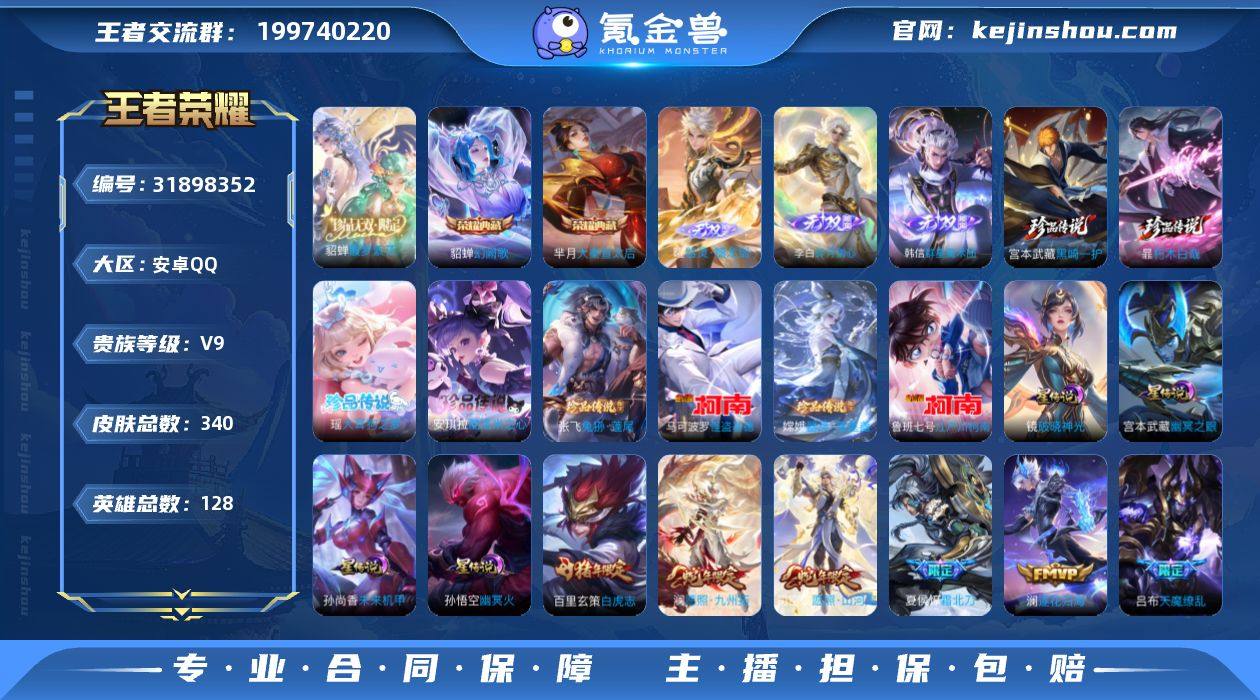 KF18312【14.4w贵族积分 刘备全皮/澜全皮 连体火影 10印记 3荣耀印记 72段打野-60段对抗路 6小国标/雅典娜1.44w/典韦1.43w/刘备-1.41w/梦奇1.1w/廉颇1.21w/达摩1w 8省标 4星传说/镜-破晓神光/孙悟空-幽冥火/宫本武藏-幽冥之眼/孙尚香-未来机甲 940紫星币 28个性按键 1天幕 】【段位以实际上号为准 截图段位并不代表实际段位!!!】 实名: 不可修改 贵族等级: V9 英雄数: 128 皮肤数: 340 荣耀水晶: 大秦宣太后,幻阙歌 无双皮: 碎月剑心,韩信群星魔术团,器灵·螭龙剑 珍品传说: 江户川柯南,怪盗基德,器灵·落星盏,兔狲·蓬尾,酷洛米之心,大耳狗之梦,朽木白哉,黑崎一护 星传说: 未来机甲,幽冥之眼,幽冥火,破晓神光 传说皮: 黄金狮子座,炽阳神光,末日机甲-孙尚香,地狱火,零号·赤焰,地狱之眼,胖达荣荣,乞巧织情,时之恋人-刘备,挚爱之约,挚爱花嫁,电玩·雷克斯,澜逐花归海,典韦战鼓燎原,朵莉亚心动手记,幻光神枪 限定皮: 李小龙,时雨天司,辉光之辰,白晶晶,天魔缭乱,神威,永曜之星,白虎志,玄武志,至尊宝,高山流水,圣诞老人,猪悟能,傲雪梅枪,山海·玄木吟,夏侯惇霜北刀,鸣野蒿,逐霄战戟,愿照·山河定,愿照·九州拓
