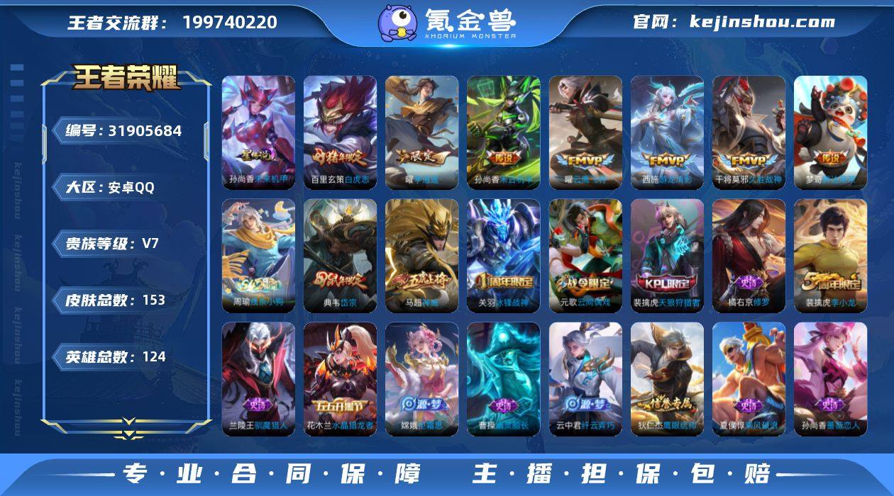 【精品号手慢无】153皮肤-7传说-36史诗 【传说皮肤】:西施游龙清影,曜李逍遥 ,曜云鹰飞将,干将莫邪久胜战神,百里玄策白虎志,梦奇胖达荣荣,孙尚香末日机甲 【限定皮肤】:狄仁杰阴阳师,赵云皇家上将,嬴政白昼王子,孙尚香蔷薇恋人,鲁班七号狮舞东方,芈月幻夜卜梦,吕布猎兽之王,周瑜赤莲之焰,元歌云间偶戏,夏侯惇朔风刀,典韦穷奇,典韦岱宗,狄仁杰魔术师,狄仁杰万华元夜,达摩沙漠行僧,项羽海滩派对,老夫子醍醐杖,关羽冰锋战神,程咬金演武夺筹,兰陵王驯魔猎人,兰陵王金庭之子,亚瑟潮玩骑士王,李元芳银河之约,李元芳云中旅人,钟馗神迹守卫,杨玉环遇见飞天,雅典娜单词大作战,蔡文姬繁星吟游,太乙真人饕餮,鬼谷子原初探秘者,黄忠火炮绅士,苏烈千军破阵,百里玄策白虎志,弈星混沌棋,沈梦溪星空之诺,沈梦溪大漠名商,明世隐疑决卦,裴擒虎天狼狩猎者,裴擒虎李小龙,裴擒虎擒涛扼浪,狂铁御狮,米莱狄御霄,云中君纤云弄巧,盾山御銮,上官婉儿梁祝,嫦娥拒霜思,曜李逍遥 ,蒙犽狂想玩偶喵,鲁班大师探海日志,桑启海盐诗旅,张良古海寻踪 【年限皮肤】:百里玄策白虎志,典韦岱宗