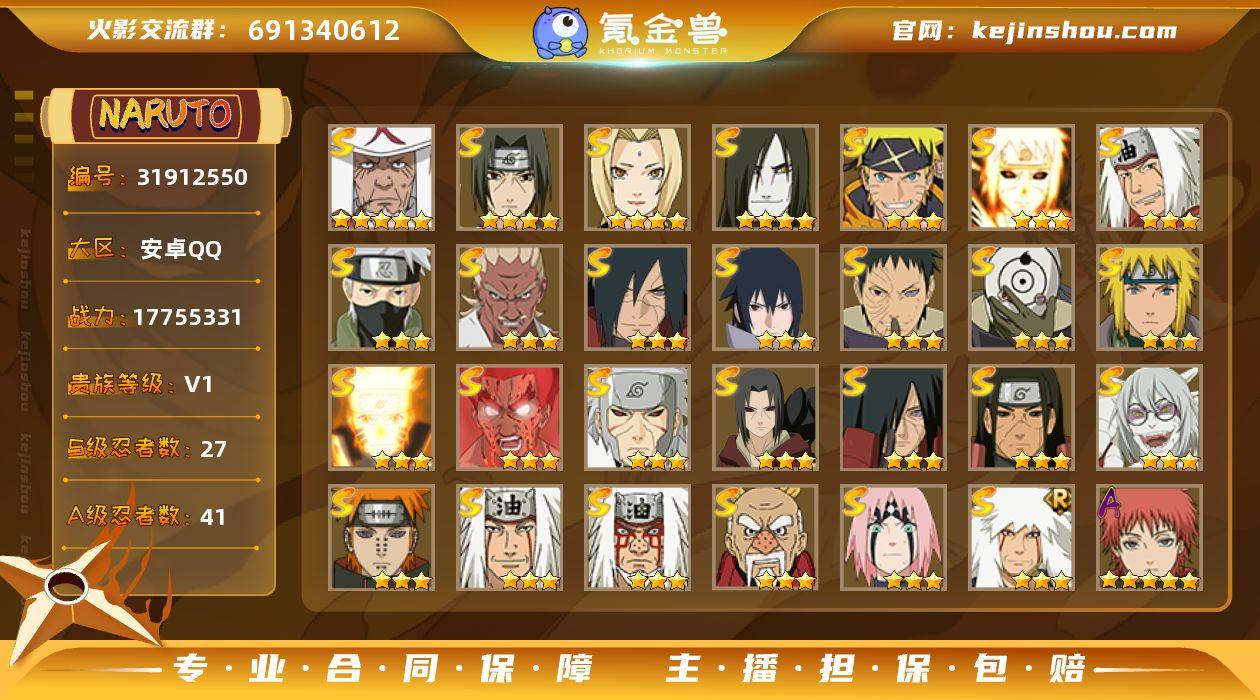实名:不可二次实名 贵族等级:V1 战力值:17755331 S忍数:27 A忍数:41 五星猿飞日斩,四星宇智波鼬「须佐能乎」,四星纲手,四星大蛇丸,三星漩涡鸣人·宇智波佐助,三星波风水门「九喇嘛连结」,三星自来也「传说中的三忍」,三星旗木卡卡西「须佐能乎」,三星艾「忍界大战」,三星宇智波斑「秽土转生·解」,三星宇智波佐助「永恒万花筒」,三星宇智波带土「忍界大战」,三星宇智波斑「白面具」,三星波风水门,三星漩涡鸣人「九喇嘛连结」,三星迈特凯「死门」,三星千手扉间「秽土转生」,三星宇智波鼬「秽土转生」,三星宇智波斑「秽土转生」,三星千手柱间「秽土转生」,三星药师兜「仙人模式」,三星佩恩「天道」,三星自来也,三星自来也「仙人模式」,三星大野木「三代目土影」,三星春野樱「忍界大战」,三星自来也「舞之豪杰」 五星蝎,五星干柿鬼鲛,五星猿飞阿斯玛,五星迈特凯,四星土台「忍界大战」,四星飞段「死司凭血」,四星飞段,四星我爱罗「疾风传」,二星小南「神驹佑将」,二星迈特凯「青春爆炸」,二星巳月「仙人模式」,二星大野木「侠隐江湖」,二星桃地再不斩「秽土转生」,二星宇智波泉奈,二星蝎「绯流琥」,二星李洛克「忍界大战」,二星旗木卡卡西「幻之真容」,二星漩涡博人「桃式显现」,二星日向宁次·忍界大战,二星长十郎「六代目水影」,二星宇智波止水,二星长门「青年」,二星艾「青年」,二星达鲁伊「五代目雷影」,二星波风水门「青年」,二星奇拉比「忍界大战」,二星黑土「博人传」,二星宇智波佐助「须佐能乎」,二星迪达拉「秽土转生」,二星宇智波带土「暴怒」,二星漩涡鸣人「九尾查克拉」,二星千代「近松十人卫」,二星秋道丁次「忍界大战」,二星大蛇丸「晓」,二星春野樱「百豪」,二星照美冥「五代目水影」,二星宇智波佐助「万花筒写轮眼」,二星漩涡鸣人「仙人模式」,二星角都「地怨虞」,二星迪达拉,二星宇智波鼬 卖家说:急用钱,能多加点就多加点吧,本人一手号无断坑过