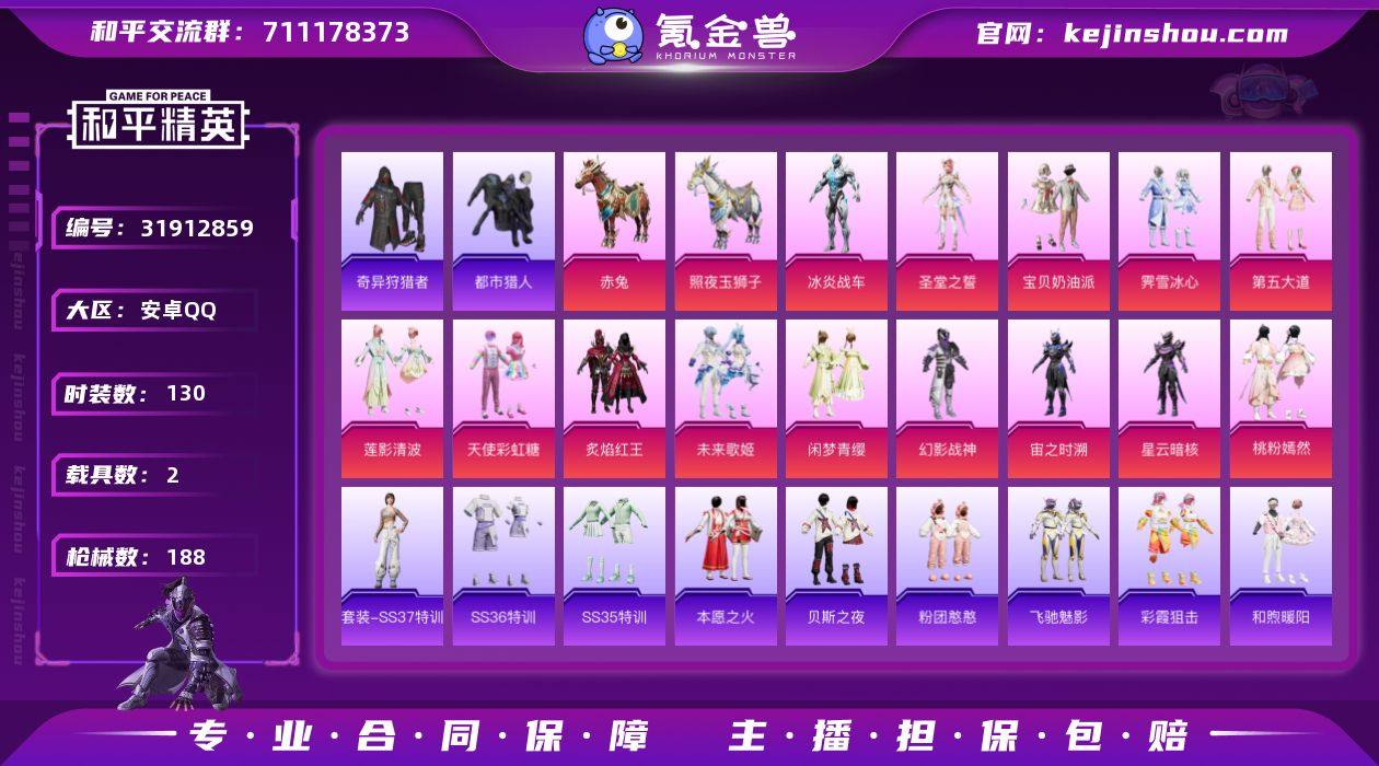 实名:可二次实名 是否支持人脸包赔:支持 粉装数量:5 特效枪数量:11 载具数:3 时装数:821 枪械数:293 奇异狩猎者,都市猎人,派对舞王 三级沙丘之主-图卡盟 蝶舞迷情,放客神游,极限特训,洛天依,梦幻火箭 七级M416-五爪金龙,五级DP-28-豹影疾电,五级MG-36-沧焰双生,五级AKM-炫紫旋律,五级AUG-暖羊咩咩,五级Kar98K-巳巳如意,五级SCAR-L-纯梦嫁纱,三级SCAR-L-魔童闹海 哪吒,三级AUG-星梦奇缘,三级M416-墨龙九天,一级ACE32-萌骑漫游 冰绡玉鳞,黑曜夜骑,星梦玉骢 狙击之神,马上有钱,福马献瑞,SS37特训,青翼流星,雪国风尚,画境星梦,琴音绮想,书海巡游,SS36特训,奇异狩猎者,炫彩糖果,萌鸡速递,SS35特训,元气之梦,漫游都市,薄荷星砂,狂鲨锋刃,凌霄紫焰,擎苍青焰,SS34特训套装,朱霞炽焰,Alan Walker,暗影哥特,冰冻风暴,缤纷果语,北国孤狼,冰公主,薄荷蓝莓,白色伏地魔,半糖蓝莓,冰原使者,长空猛禽,潮流炫酷,苍穹猎鹰,传奇侦探,春日漫步,纯真浪花,蝶变,大橘大利,呆萌铁蟹,都市猎人,翡翠之思,绯格组合,疯狂小兔子,福星高照,飞行日记,刚毅裁决者,光之冒险,海滨突袭者,幻彩翩翩,海岛探路者,湖蓝色名流,红镰战舞者,好奇恐龙,黑色伏地魔,红色运动,幻世战舞者,和煦暖阳,幻羽潜行,极地朋克,军刀雅典娜,晶辉守护,惊鸿侠骨,娇憨猪猪,竞技达人朋克,竞技名士,竞技勇士朋克,坚韧舞者,决胜时刻,街头潮人,街头风暴,军械专家,锦衣飞扬,金羽特工,空岛之星,酷萌兔限定,狂沙舞者,狂战萌兔,临安公主,龙的传人,凛冬战士,龙魂突击队,猎鹰,冷酷挑战者,玲珑飞花,黎明保卫者,浪漫天命,蓝色运动,恋语绒绒,漫步者,妙红点点,梦幻奶油,萌黄之夏,麻辣教官,蜜露汐语,懵萌河马,曼妙人鱼,萌趣咩咩,明鸳圣池,梦魇先生,霓虹极客,霓虹街区,怒火燎原,柠萌假日,牛气冲天,牛气满满,派对绅士,派对舞王,破蛋小黄鸡,青春校园,轻风白浪,青涩时光,骑行爱好者,青玉碎影,云朵鹅,荣耀,热情海星,人气偶像,燃烧卡路里,圣诞大吉,森林游猎者,神秘领域,神气柴柴,SS10特训,SS11特训,SS12特训,SS18特训,SS19特训,SS20特训,SS21特训,SS22特训,SS23特训,SS24特训,SS25特训,SS26特训,SS27特训,SS28特训,SS29特训,SS2特训,SS30特训套装,SS31特训套装,SS32特训套装,SS33特训套装,SS3特训,SS4特训,SS5特训,SS6特训,SS7特训,SS8特训,SS9特训,巳巳如意,酸甜橘柚,水银刺客,探宝勇士,太极红客,甜蜜菠萝,豚鼠丹丹,涂山之恋,甜心亚梦,田园牧歌,特战英豪,特战装甲,王牌教练,顽皮玉兔,小丑鱼,小狗蛇点点,迅捷狂鲨,绚烂繁星,雪绒豹,旭日情侣,夏日倾情,雪山精英,雪山征服者,星途旅人,香榭午后,虚音幻奏,异彩先驱,跃动心情,耀粉歌者,摇滚舞王,摇滚战魂,玉兔迎春,鹰眼刺客,焰鹰斗篷,鱼渊荷华,夜莺强袭者,耀眼新星,燕燕于飞,异域银装,战地菁英,智谋强哥 僚机-冰龙团团,炫彩糖果飞行器,节奏起飞飞行器,灵珠游龙飞行器,神秘黑猫飞行器,万象金身飞行器,祥瑞起舞飞行器,暮色玫影降落伞,绝对恒星降落伞,炫彩糖果降落伞,魔童闹海 敖丙降落伞,魔童闹海 哪吒降落伞,喜羊羊与灰太狼降落伞,暗夜鎏金降落伞,创世·救赎降落伞,幻彩电音降落伞,幻影飞狐降落伞,极限特训降落伞,临安公主降落伞,灵猫魔法师降落伞,梦幻火箭降落伞,墨龙九天降落伞,沙