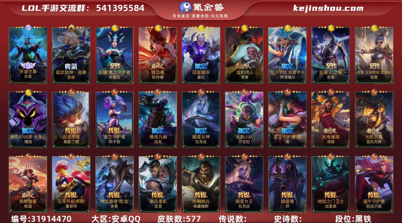 寻道世尊永恩 英雄129 皮肤564 1终极/1典藏/12神话/69传说/331史诗 【终极皮肤】:寻道世尊 永恩 【典藏皮肤】:超武乾坤:孤拳 瑟提 【神话皮肤】:冠星耀辰 盖伦,夜星流火 金克丝,至臻 星之守护者 辛德拉,银鞍玉甲 嘉文四世,此志凌云 嘉文四世,龙的传人 李青,天命豪赌 瑟提,至臻 心之钢 永恩,至臻 玉剑传说 武剑仙 锐雯,满弓镇魂 箭无虚发 韦鲁斯,战斗学院 白金学长 伊泽瑞尔,蝶恋春 凯特琳,最终BOSS 里·大魔王 维迦 【限定皮肤】:龙的传人 李青,地底世界 崔斯特,广寒仙子 嫦娥 黛安娜,穿星魔锋 赵信,创星之灵 璐璐,掠星魔刃 卡萨丁,御星魔矢 艾希,斩星魔剑 易,鸡里奥 加里奥,钢铁军团 拉克丝,赵云 子龙 赵信,冬季仙境 奥莉安娜,耀星女神 拉克丝,邪恶圣诞老人 维迦,虎痴之拳 蔚,闭月之颜 貂蝉 卡特琳娜,水晶玫瑰 嘉文四世,水晶玫瑰 蔚,关羽 云长 泰达米尔,涂鸦小队 莎弥拉,山海绘卷 烬,山海绘卷 诺提勒斯 【传说皮肤】:神王 盖伦,光影巨翼 亚托克斯,海魔至尊 亚托克斯,暗星女王 拉克丝,耀星女神 拉克丝,心之钢 凯隐,源计划:净化 薇恩,光明哨兵 薇恩,北极星神 黛安娜,星之守护者 金克丝,暗星尊 烬,星域游侠 崔斯特,星之守护者 卡莎,星之守护者 阿卡丽,太空律动 “猫猫”布里和里茨 布里茨,K/DA ALL OUT 萨勒芬妮,黑夜使者 亚索,神龙尊者 昼日真龙 亚索,斗魂无双 亚索,御风墨影 亚索,星之守护者 阿狸,灵魂莲华 阿狸,天煞 劫,星域武神 贾克斯,西部魔影 卢锡安,日蚀骑士 蕾欧娜,月蚀骑士 蕾欧娜,西部魔影 大小姐 蕾欧娜,驯龙炮手 崔丝塔娜,欧米伽小队 幽灵特工 提莫,星之守护者 落 霞,翩翩绣蕊 霞,星之守护者 陨 洛,星之守护者 熠 洛,剪胜裁春 格温,神拳 李青,神龙尊者 圣龙 李青,律政大亨 蒙多医生,炼狱魔犬 内瑟斯,福牛守护者 厄运小姐...