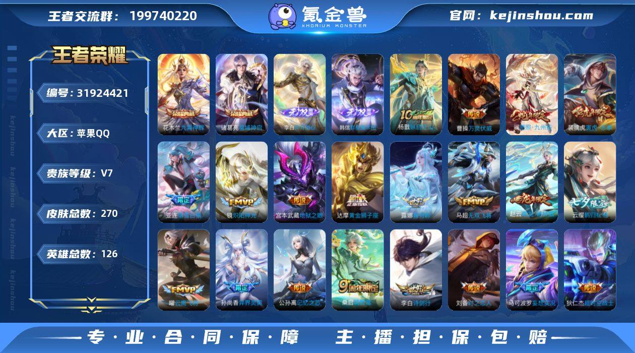 LJ5720苹果Q/270皮22传说2无双2典藏/九霄神辉/碎月剑心/落雪白狼/鹤归松栖/皮肤优质