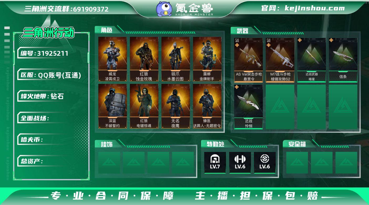 【乐乐L215】【资产57.7M】【现金6020k】【特勤75661】【M7顶级模版极品B】【巨浪顶级模版极品A】【暗星】【怜悯】【信条】【凌霄戍卫】【蚀金玫瑰】【水墨云图】【干员皮电锯惊魂】【金牌射手】【夜鹰】【送葬人】【不破誓约】