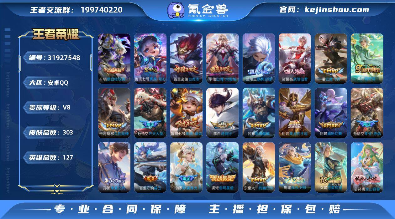 可换绑【V8捡漏精品号·铠典藏·齐天大圣·兔年李信·520孙策·兰陵王默契交锋·零号赤焰·白虎志·武陵仙君·多传说限定号】265幸运值 1星传说,4按键,10王者印记,满级铭文,可二次KK9220,安卓Q-V8-303皮肤-1典藏皮肤-19传说-103史诗 【英雄全皮】:刘邦全皮,孙权全皮,盾山全皮,猪八戒全皮,鲁班大师全皮,金蝉全皮,空空儿全皮【荣耀典藏】:铠银白咏叹调【星元皮肤】:鲁班七号寅虎焰心【传说皮肤】:桑启鸣野蒿,东皇太一灼幽烈阳,伽罗炽翼辉光,孙悟空齐天大圣,李信山海炽霜斩,吕布怒海麟威,李白诗剑行,百里守约碎云,孙策挚爱之约,鲁班七号寅虎瑞焰,兰陵王默契交锋,虞姬启明星使,孙悟空零号赤焰,曜云鹰飞将,貂蝉猫影幻舞,干将莫邪久胜战神,百里玄策白虎志,后羿黄金射手座,诸葛亮武陵仙君【限定皮肤】:白起狰,姜子牙天穹之誓,狄仁杰阴阳师,虞姬凯尔特女王,廉颇寅虎御盾,赵云皇家上将,赵云引擎之心,赵云百木心枪,墨子神迹守卫,嬴政优雅恋人,嬴政白昼王子,孙尚香蔷薇恋人,鲁班七号狮舞东方,鲁班七号寅虎瑞焰,庄周高山流水,高渐离死亡摇滚,阿轲迷踪丽影,钟无艳王者之锤,钟无艳超时空战士,扁鹊炼金王,白起夜都怪侠,芈月重明,芈月幻夜卜梦,吕布猎兽之王,周瑜赤莲之焰,元歌无心,夏侯惇朔风刀,夏侯惇匿光决锋者,甄姬落雪兰心,曹操烛龙,典韦穷奇,马可波罗暗影游猎,马可波罗山海玄木吟,狄仁杰魔术师,达摩沙漠行僧,项羽海滩派对,老夫子醍醐杖,老夫子航海奇遇记,关羽冰锋战神,刘邦夺宝奇兵,韩信飞衡,韩信傲雪梅枪,王昭君午后时光,兰陵王默契交锋,兰陵王驯魔猎人,兰陵王金庭之子,孙悟空大圣娶亲,孙悟空零号赤焰,孙悟空孙行者,孙悟空齐天大圣,牛魔御旌,后羿圣弓游侠,李元芳匿光侦查者,李元芳云中旅人,虞姬启明星使,钟馗神迹守卫,钟馗驱傩正仪,杨玉...