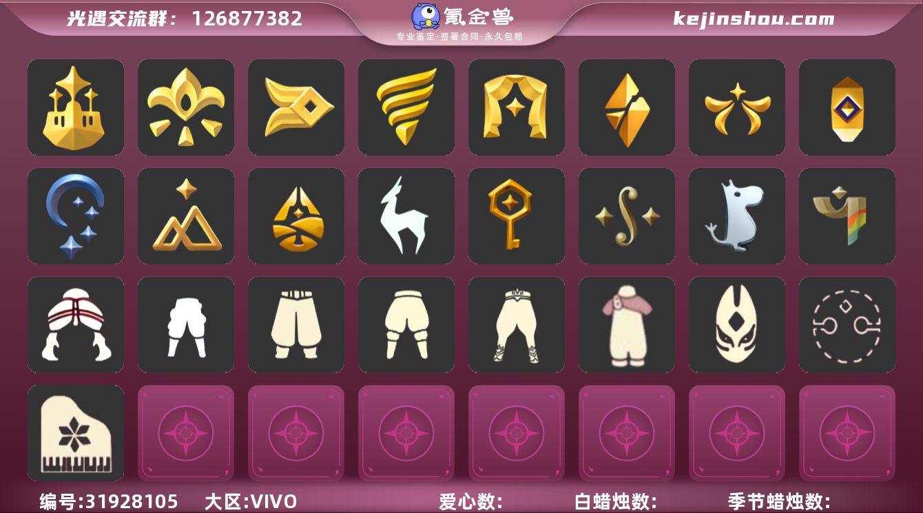 12季9翼白枭欧若拉之翼王子围巾蝙蝠斗绊爱套装衔福献瑞暗彩装扮巫师帽详情看图,价格可刀 资源:蜡烛 33 爱心 24 红烛8 翼9 已毕业地图:全图毕业 毕业季节: 风行季 表演季 破晓季 追忆季 筑巢季 归巢季 姆明季 彩染季 青鸟季 夜行季半毕业 拾光季半毕业 二重奏季半毕业 毕业季节物品:多羽发饰 蓝黄羽袖 燕尾斗篷 黄眉企鹅面具 白枭发型 双翼遥鲲斗篷 冥龙斗篷 肩带 追忆之书 设计师长袍 光之子试衣 五塑彩羽发 五塑彩带斗 姆明抱枕 姆明大伞 姆明长裙 彩染围巾斗篷 辉光羚羊面具 青鸟面饰 青鸟斗篷 稀有礼包: 王子围巾 欧若拉之翼 新春福娃 蝙蝠斗 南瓜头 蛛网斗篷 暖冬瑞雪 绊爱套装 衔福献瑞礼包 青衫落拓礼包 姆明饰品 雪人暖靴 祥云服饰 暗彩装扮 巫师帽 星月头冠 巫树犄角 圣诞鹿角 大桔大利 小狗周年头饰 玉兔头饰 音韵吉他 凯旋提琴 献瑞折扇礼包 祥云纸伞 热门裤子:背带裤 鳐鲲长裙 妮妮长裙 海洋武士裤 白棉裤 搓澡巾 武士裤 紧身连体衣 羽袖长袍 小丑服 女仆围裙 美工衣 红色流珠裙 探险燕尾服 雪人暖靴 祥云服饰 暗彩武士裤 热门面具:矮人面具 狐狸面具 黄鼠狼面具 黄眉面具 一字眉 棕熊面具 盲僧眼罩 向导面具 青鸟面具 红脸蛋面具 玫瑰花面具 玫瑰面具 黑脸 鸟羽面具 热门发型:海草头 爆炸头 大胡子 小飞象 雨妈 卡卡 平菇 龙骨 指甲盖 箬笠 蝴蝶结 公主头 水母头 书虫 总裁 正太 高马尾 明制帽 郡主头 斗笠 白枭 李逍遥发型 彩色脏辫 彩羽发型 春丽丸子头 樱花头 马蹄莲发型 鳐鲲发型 猫猫头 女巫发型 圣诞帽 光头 南瓜头 巫师帽 绊爱发型 青衫落拓发型 热门头饰:毕业羽毛 花环 珊瑚 蓝色音乐会 红耳机 探险耳机 星月头冠 巫树犄角 圣诞鹿角 大桔大利 小狗头饰 玉兔头饰 热门斗篷:五角星斗篷 花瓣斗篷 红金斗篷 黑金斗...