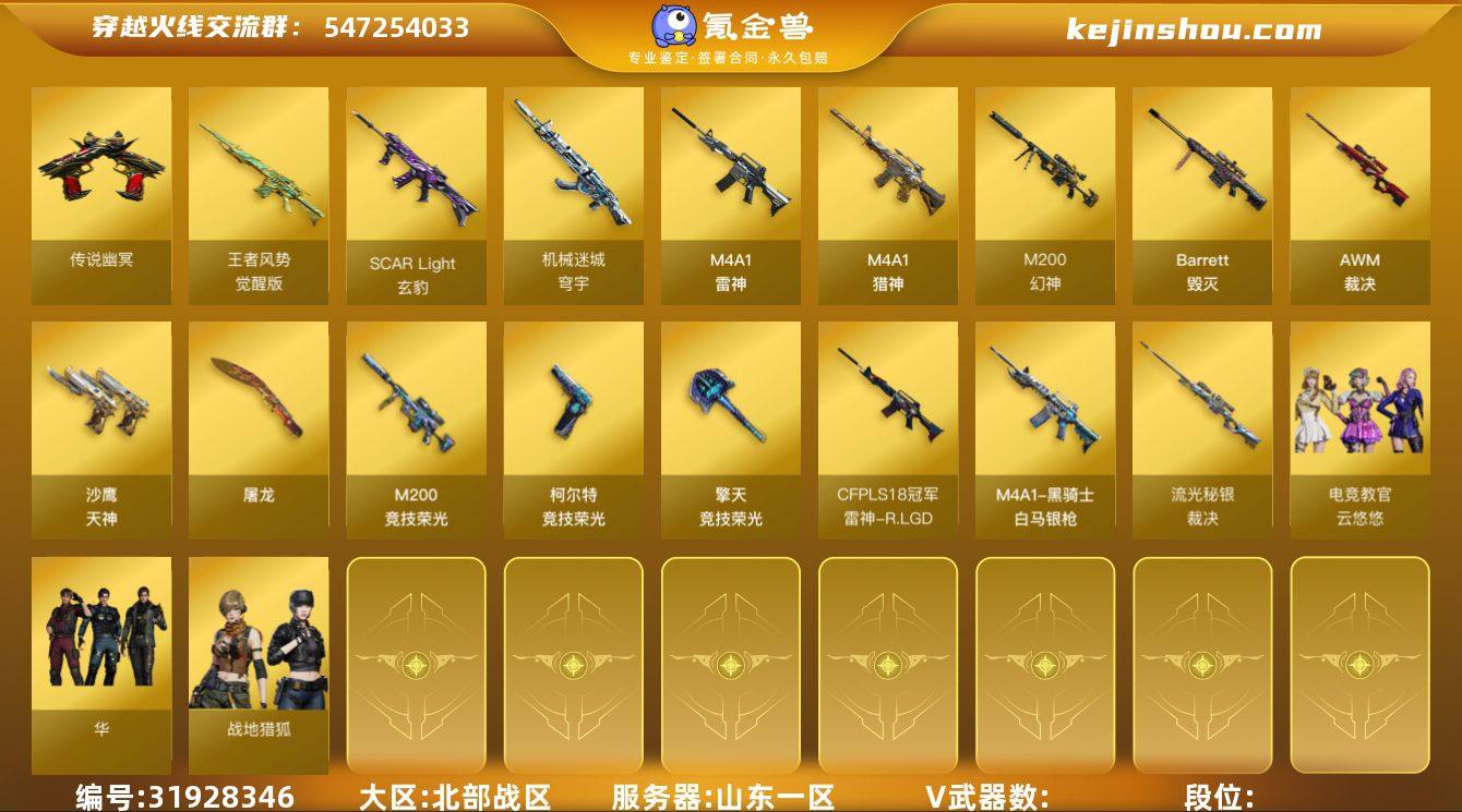 ABC11324/北部/山东一区/钱包注销/可排位/可二次/掌火ID:766684279/47V/传说幽冥/幻神/幻神丹凤/玄豹/M200竞技荣光套/M200竞技荣光/裁决/裁决流光秘银/王者风势/毁灭/雷神/【四防已开】/电竞教官云悠悠/【四防未开】/华/永久AC/细节看图