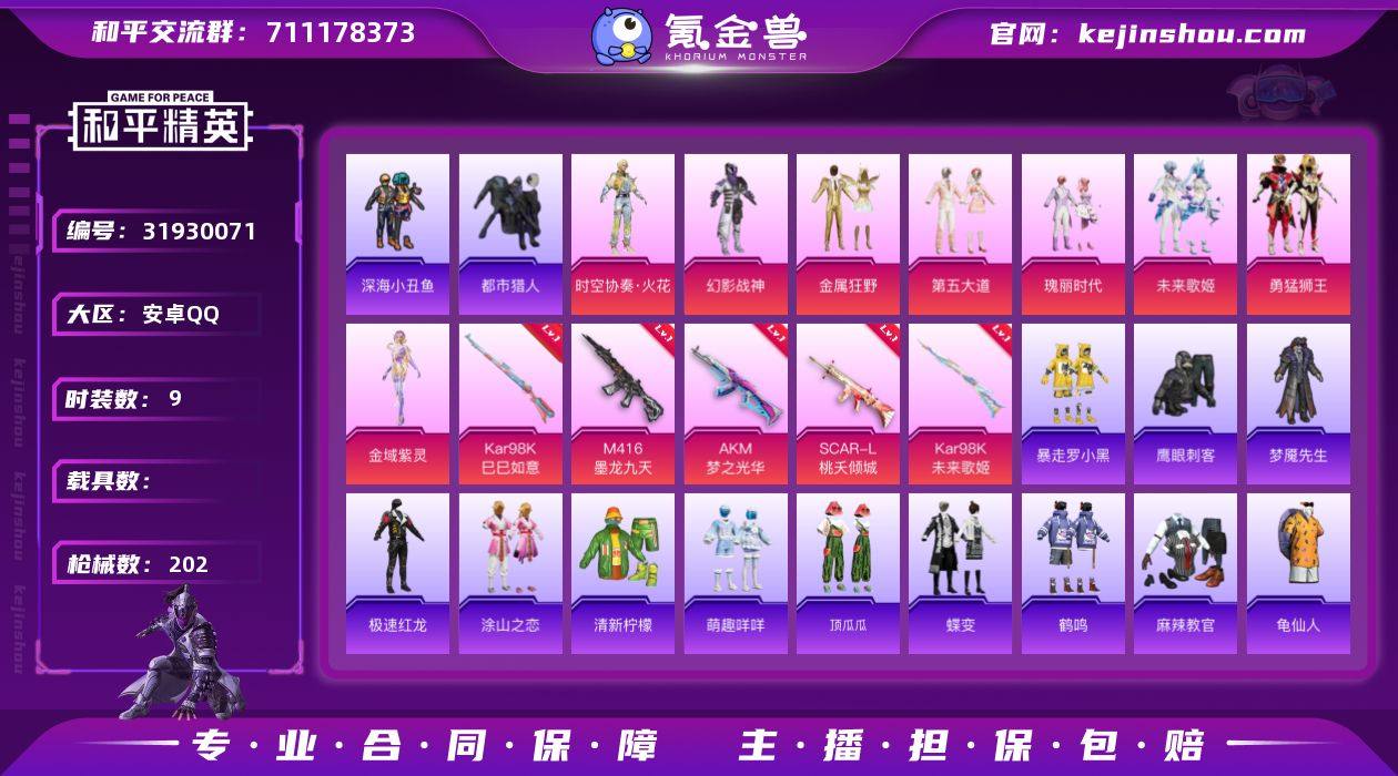 M1046605【男神素材身法号9粉装-9特效枪都市猎人 哥特 深海 M416-墨龙九天 AKM-梦之光华满级 SCAR-L-桃天倾城满级】安卓手Q-9粉装-9特效枪-153套装-202枪皮-14王牌印记-不朽星钻Ⅰ-65820热力值【9粉装】时空协奏·火花,未来歌姬,勇猛狮王,角色-金域紫灵,幻影战神,第五大道,角色-罪夜之冕,瑰丽时代,金属狂野【9特效枪】M416-墨龙九天[3级],UMP45-萌骑冒险[4级],SCAR-L-桃夭倾城[7级],DP-28-豹影疾电[5级],AKM-梦之光华[7级],Kar98K-未来歌姬[4级],Kar98K-巳巳如意[5级],Mk14-福马献瑞[1级],破片手榴弹-招财进宝[7级]【6稀有】暗影哥特,深海小丑鱼,浪漫天命,ACT战队服,都市猎人,暴走罗小黑【12飞行器】狂鲨锋刃飞行器,异域银装飞行器,超新星飞行器,天空之门飞行器,破刃行动尾迹,光之冒险尾迹,空岛之星尾迹,马上有福飞行器,沙丘之主天马,炫彩糖果飞行器,粉色滑翔尾迹,登顶巅峰飞行器【2头盔】深海小丑鱼头盔,银河战甲头盔【1背包】花间之火背包【331其它衣服和枪皮】SS35特训,恋语绒绒,甜梦熊熊,青春校园,雪国风尚,黄色运动,和煦暖阳,角色-极地流光,甜蜜告白,SS33特训,幻世战舞者,SS23特训,风暴特警,画境星梦,白鹅菜菜,妙红点点,贝斯之夜,春光漫游,冰冻风暴,霓虹街区,萌黄之夏,创世·追猎,角色-风玲,梦魇先生,娇憨猪猪,黄色伏地魔,天籁歌者,惊鸿侠骨,樱梦幻音,田园牧歌,角色-情公主,绮丽涂鸦,鹰眼刺客,蓝彩潮人,神气柴柴,青涩时光,SS25特训,夏日倾情,蓝色运动,异域银装,空岛之星,小熊娃娃,曼妙人鱼,懵萌河马,元素星魂,萝兰蝴蝶,幽夜迷踪,SS37特训,角色-X,莱茵河畔,锦衣飞扬,超能元气,幻彩翩翩,SS28特训,晨曦薄雾,SS36特训,萌趣咩咩,巳巳如意,光之冒险,漫步者,龙舌兰冰茶,极速红龙,琴音绮想,鹤鸣,涂山之恋,幻羽潜行,冰河战士,长空猛禽,SS34特训,街头风暴,绝对偶像,顶瓜瓜,荣耀,轻风白浪,蝶变,龟仙人,灵蜜圈