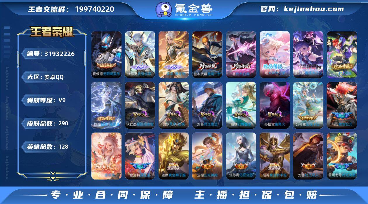 特·万战曹操·无限飓风号·天机白泽·器灵螭龙剑·沧流箭·黑崎一护·朽木白哉·酷洛米之心·大耳狗之梦·器灵落星盏·孙策时之奇旅·太华红枫·幻舞叠翠·满马年限定·浮生妄·绯月行·寅虎赤拳】【可二次】w17418-安卓Q-128英雄-290皮肤-7王者印记-300铭文-贵族积分10w【贵族9】【1典藏·2无双·7珍品·5星传说·32传说·21按键】【因赛季更新游戏段付以上号为准!】 【英雄全皮】:孙权全皮,敖隐全皮,夏洛特全皮,空空儿全皮,影全皮 【荣耀典藏】:夏侯惇无限飓风号 【无双皮肤】:诸葛亮天机白泽,曜器灵螭龙剑 【珍品传说】:伽罗沧流箭,宫本武藏黑崎一护,暃朽木白哉,安琪拉酷洛米之心,瑶大耳狗之梦,嫦娥器灵落星盏,孙策时之奇旅 【星元皮肤】:伽罗太华红枫,狄仁杰星际治安官,刘备时之思念,孙悟空幽冥火,貂蝉幻舞叠翠 【传说皮肤】:云缨神骥越千峰,关羽神骥镇沧海,朵莉亚神骥鸣幻洲,狄仁杰神骥赴朔漠,貂蝉神骥聚万邦,马超神骥逐星野,王昭君长夜焕生,后羿神树通天,曹操万灵伏威,公孙离云诺千山,西施续相思,虞姬愿照岁时盈,云缨幻光神枪,桑启鸣野蒿,马超琥珀纪元,鲁班七号时之奇旅,马可波罗妄想实况,公孙离记忆之芯,夏洛特浮生妄,不知火舞绯月行,裴擒虎寅虎赤拳,赵云淬星耀世,周瑜音你心动,虞姬启明星使,刘备时之恋人,伽罗太华,达摩黄金狮子座,花木兰冠军飞将,梦奇胖达荣荣,后羿黄金射手座,孙悟空地狱火,狄仁杰超时空战士 【限定皮肤】:姜子牙天穹之誓,狄仁杰阴阳师,赵云皇家上将,嬴政优雅恋人,鲁班七号狮舞东方,鲁班七号时之奇旅,高渐离玩趣恶龙,阿轲迷踪丽影,芈月重明,曹操烛龙,典韦蓝屏警告,马可波罗妄想实况,狄仁杰魔术师,狄仁杰万华元夜,达摩沙漠行僧,项羽海滩派对,老夫子醍醐杖,老夫子航海奇遇记,程咬金演武夺筹,韩信飞衡,不知火舞绯月行,孙悟空至尊宝,...