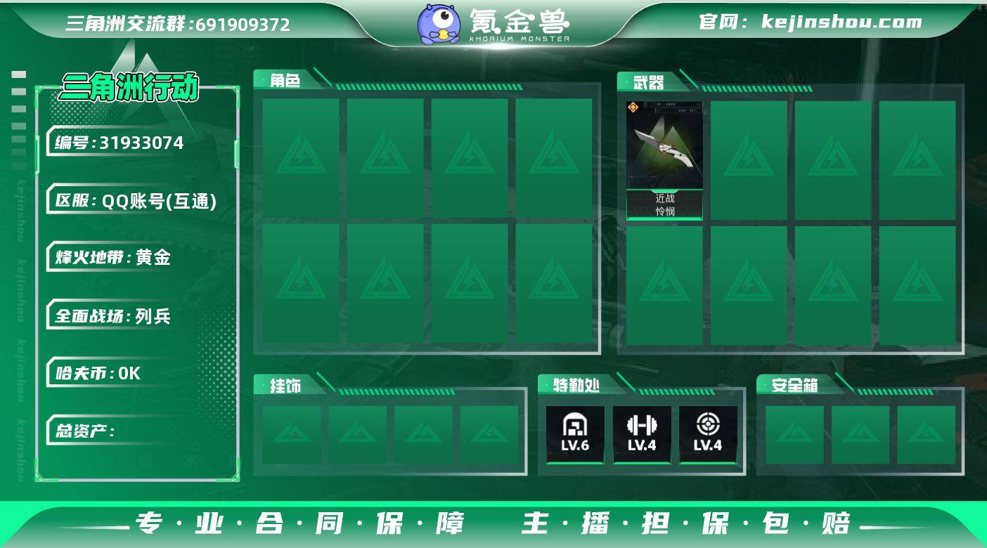 总资产:125.5M 1干员外观 1近战传说 16传说枪械 哈夫币:1.905K 顶级安全箱(3×3)4.11号到期 不可修改实名 【烽火地带段位】黄金 【全面战场段位】列兵 【干员外观】骇爪-维什戴尔 【传说武器皮肤】近战-怜悯,R93狙击步枪-维什戴尔,SCAR-H战斗步枪-启航,KC17突击步枪-电锯惊魂,AKM突击步枪-锦绣,.357左轮-缄花,SR-25射手步枪-缄花,M14射手步枪-缄花,SMG-45冲锋枪-锦绣,K437突击步枪-锦绣,SR-3M紧凑突击步枪-茶蘼,SG552突击步枪-运动员,SKS射手步枪-骑士,PKM通用机枪-茶蘼,M14射手步枪-蛮荒,SCAR-H战斗步枪-茶蘼