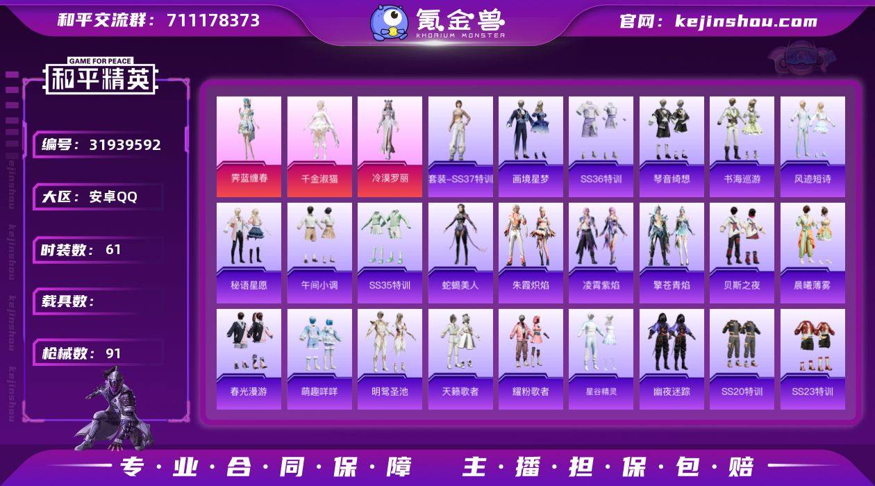 【和平精英】3粉装,8特效枪,0载具,历史最高段位:超级王牌14星 王牌印记15次 热力值:56513,133套装,209枪械,248装备,123战备;套装:角色-千金淑猫,角色-霁蓝缠春,角色-冷漠罗丽,套装-竞技名士,套装-长空猛禽,套装-海岛探路者,套装-冷焰舞者,套装-浪漫假日,套装-春日漫步,套装-燃烧卡路里,套装-完美偶像,套装-人气偶像,套装-幻影武者,套装-街头潮人,套装-魅力单车,套装-都市魅力,套装-热血青春,套装-酷潮明星,套装-幻世战舞者,套装-青涩时光,套装-缤纷果语,套装-滨海厨神,套装-龙魂突击队,套装-麻辣教官,套装-破蛋小黄鸡,套装-白熊同盟,套装-探宝勇士,套装-牛气满满,套装-白糯汤圆,套装-战术大师,套装-狙击之神,套装-耀粉歌者,套装-飞行日记,套装-热情海星,套装-纯真浪花,套装-天籁歌者,套装-电音精灵,套装-吉莉礼服,套装-福星高照,套装-SS20特训,套装-SS21特训,套装-萌趣咩咩,套装-SS22特训,套装-光之冒险,套装-绯格组合,套装-SS23特训,套装-星谷精灵,套装-王牌教练,套装-柠萌假日,套装-SS24特训,套装-龟仙人,套装-涂山之恋,套装-SS25特训,套装-惊鸿侠骨,套装-锦衣飞扬,套装-晨曦薄雾,套装-龙的传人,套装-冰河战士,套装-SS26特训,套装-快闪甜心,套装-春光漫游,套装-漫游都市,套装-空岛之星,套装-明鸳圣池,套装-贝斯之夜,套装-焰鹰斗篷,套装-幽夜迷踪,套装-幻羽潜行,套装-SS27特训,套装-恋语绒绒,套装-老实芭蕉,套装-SS28特训,角色-白光莹,套装-街头风暴,套装-海盐绵绵冰,套装-蝶变,套装-SS29特训,套装-雏菊兔兔,套装-萝兰蝴蝶,套装-异域银装,角色-蜜桃派对,套装-星途旅人,角色-糖霜甜心,套装-SS30特训,套装-青团波波,角色-光矢逐梦,角色-夜瞳黯灵,套装-糖糖葫芦,套装-纯白跃动,套装-SS31特训,套装-鱼渊荷华,...