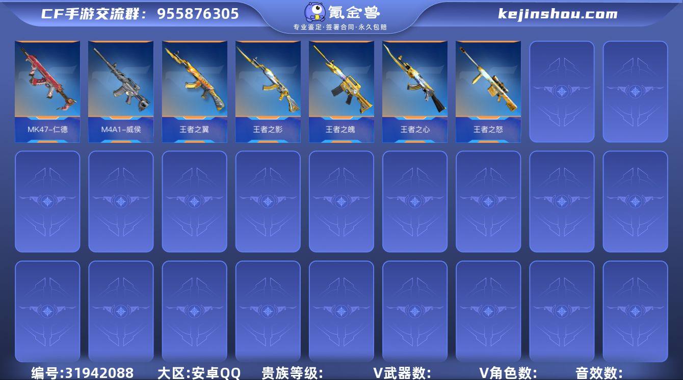 ABC11328/安卓QQ/贵8/可转区/钱包注销/可二次/189V不重复/39角色/348万化/26王者武器/王者之心套/王者之魄套/王者之怒套/M4A1雷霆王者/冰霜奇迹/王者之怒/冰霜奇迹/仁德/威侯/王者之影/冰霜奇迹/王者之心/冰霜奇迹/盖/王者之翼/王者之魄/王者之戮/王者之兽冰霜奇迹/王者之尊/P90雷霆王者/王者之烈/M12S雷霆王者/冰霜奇迹/王者之魂/白金血钻/王者之轮/王者之锋/王者之竞手雷套/王者之翼手雷套/王者之竞手雷套/【角色】/葵/零新生/审判者/祝融夫人/炽天使X/萝拉/零/关小雨/火麒麟套/黑武士套/黑骑士套/游骑兵套/毁灭套/无影套/冰锋套/木兰套/炎龙侠套/孟获套
