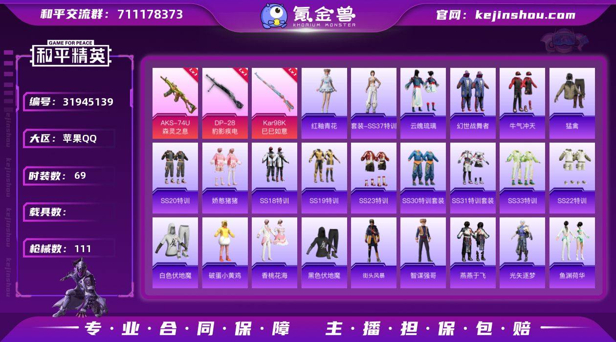 可二次实名【5特效枪1粉装 秒换绑不用等】 苹果Q区-30073热力值-2印记-69套装-111枪皮 【1粉装】 虹云熊熊【5特效枪】 AKS-74U-森灵之息(3级) Mk14-福马献瑞(5级) UMP45-萌骑冒险(2级) Kar98K-巳巳如意(5级) DP-28-豹影疾电(4级)【96热门】 破蛋小黄鸡 白色伏地魔 SS27特训 SS25特训 SS23特训 SS22特训 SCAR-L-玉兔迎春 GROZA-2B战斗服款 M762-天降萌叽 Mk47-乌木金纹 UZI-娇憨猪猪 UMP45-蓝色火焰 S12K-垂柳戏鸭 MG3-幻世战舞者 M416-蓝色火焰 GROZA-彩虹符号 长空猛禽 牛气冲天 黑色伏地魔 M24-奇异狩猎者 AA12-G-雨过天青 沙漠之鹰-雨过天青 M16A4-雨过天青 雨过天青 JS9-辉云木星 GROZA-福马献瑞 电击枪-辉云木星 霜纹水星 AWM-天降萌叽 SS18特训 福马献瑞 SS14特训 SS19特训 SS20特训 SS21特训 SS30特训 鱼渊荷华 光矢逐梦 大砍刀-鬼刀 SS28特训 海盐绵绵冰 M16A4-冰河战士 燕燕于飞 SS31特训 SS33特训 SS32特训 M24-蓝晶绮麟 老实芭蕉 奈斯 Famas-突变脉冲 平底锅-萌萌彩虹球 智谋强哥 战术大师 马上有钱 Kar98K-星穹咏叹调 烟雾弹-炽纹蛇影 突击盾牌-虎痴许褚 撬棍-炽纹蛇影 狙击之神 AKS-74U-鬼刀 M416-糯团青竹 幽雨猫猫 Kar98K-彩虹符号 短管霰弹-竹节火铳 汤姆逊-绒绒猫尾 M249-绒绒猫尾 M16A4-信仰神谕 平底锅-光之冒险 MG3-乌木金纹 Mk14-冰河战士 Kar98K-顶峰精英 Mini14-香桃花海 破片手榴弹-巳巳如意 SCAR-L-星途旅人 平底锅-娇憨猪猪 野牛-燕燕于飞 星途旅人 香桃花海 SPAS-12-燕燕于飞 白光莹 Vector-燕燕于飞 蝎式手枪-燕燕于飞 街头风暴 十字弩-燕燕于飞 VSS-香桃花海 AWM-盛世惊鸿 P90-玩趣呆呆 P90-巳巳如意 MK20-