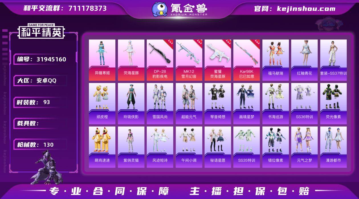 可二次实名【女号7特效枪3粉装 秒换绑不用等】 安卓Q区-38503热力值-6印记-93套装-130枪皮 【3粉装】 虹云熊熊 角色-异瞳寒姬 角色-荧海星豚【7特效枪】 Mk14-福马献瑞(5级) 信号枪-金乌曜日(2级) UMP45-萌骑冒险(2级) 蜜獾-荧海星豚(5级) MK12-雪月幻音(4级) Kar98K-巳巳如意(5级) DP-28-豹影疾电(5级)【170热门】 恶魔喵喵 白色伏地魔 MG3-幻世战舞者 M416-蓝色火焰 长空猛禽 魅力单车 黎明保卫者 橘黑制服 黑色伏地魔 海岛探路者 AA12-G-雨过天青 SCAR-L-小狗蛇点点 沙漠之鹰-雨过天青 荧光像素 平底锅-画境星梦 玲珑侠影 M16A4-雨过天青 晶灵使者 AKS-74U-荧光像素 雨过天青 迷雾之月 MG-36-薄荷星砂 GROZA-福马献瑞 恋语绒绒 SS34特训 漫游都市 雪夜云雾 朱霞炽焰 福马献瑞 GROZA-晶梦幻蝶 超能元气 Win94-晶梦幻蝶 PKM-荧光像素 彩虹兔 燃点复合弓-罪夜之冕 凌霄紫焰 小鸟芋圆 蓝冰羽 破片手榴弹-爆破雪人 ACE32-冰晶雪宝 俏兔智灵 鱼渊荷华 擎苍青焰 SS28特训 PKM-啾咪啾咪 海盐绵绵冰 燕燕于飞 SS31特训 SS33特训 SS32特训 巳巳如意 紫幽梦 迎夏光舞 极速光影 童真绒兔 雪绒豹 游乐 狂鲨锋刃 SS36特训 异域银装 智谋强哥 战术大师 混沌火种 JS9-凌霄紫焰 MG-36-凌霄紫焰 马上来财 蜜獾-启元战纹 ARX-凌霄紫焰 云朵鹅 晶辉守护 G36C-星穹咏叹调 P92-凌霄紫焰 炽纹蛇影 平底锅-凌霄紫焰 狙击之神 S686-雪月幻音 SVD-冷漠罗丽 幽雨猫猫 UMP45-海盐豹豹 M417-虹云熊熊 VSS-星月云朵 M417-玩趣呆呆 摩登天骄 Mk14-薄荷星砂 AMR-喜羊羊与灰太狼 燃烧瓶-福马献瑞 PKM-紫幽梦 ACE32-画境星梦 M1加兰德-画境星梦 琴音绮想 破片手榴弹-巳巳如意 Mk14-紫幽梦 AKM-涂鸦街区 爆炸猎弓-喜羊羊与灰太狼 蝎式手枪-千金