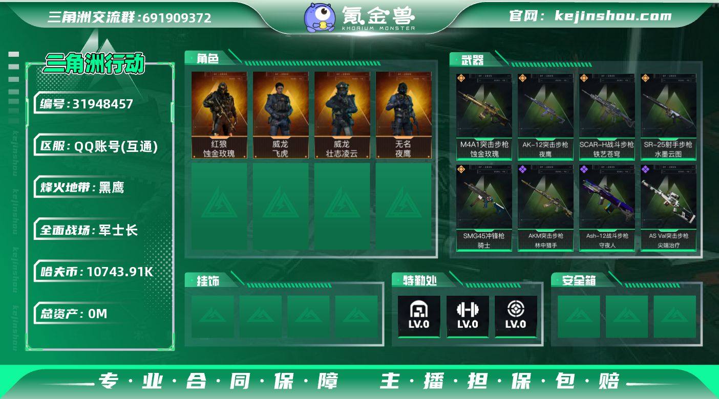 29202|精品脱坑资产号 总资产101.1M 流动资产68.9M 蚀金玫瑰 维氏戴尔 天际线 飞虎 电锯皮 无题 金牌 夜鹰 不破 壮志 北极星 信条 低价出QQ区 哈夫币:10743914 干员外观数:10 近战数:3 典藏数:34 枪械数:312 载具数:74 烽火地带等级:60 全面战场等级:50 烽火地带段位:黑鹰 全面战场段位:军士长 特勤处:技术中心Lv.3|工作台Lv.3|制药台Lv.3|防具台Lv.3 捆绑包:信条捆绑包|北极星捆绑包|鹅鸭杀捆绑包|禁卫捆绑包|捞点薯条捆绑包|狩猎时刻捆绑包 干员外观:骇爪-维什戴尔|露娜-黑·天际线|红狼-蚀金玫瑰|露娜-金牌射手|深蓝-不破誓约|红狼-电锯惊魂|蜂医-送葬人·无题密令|威龙-飞虎|无名-夜鹰|威龙-壮志凌云 近战:信条|北极星|黑鹰 枪械:KC17突击步枪-电锯惊魂|K437突击步枪-北极星|腾龙突击步枪-捞点薯条|CAR-15突击步枪-阿米娅|G3战斗步枪-狩猎时刻|G3战斗步枪-骑士|SCAR-H战斗步枪-铁艺苍穹|SCAR-H战斗步枪-启航|AK-12突击步枪-夜鹰|SG552突击步枪-运动员|M16A4突击步枪-狩猎时刻|K416突击步枪-StoryBoard|ASh-12战斗步枪-鹅鸭杀|M4A1突击步枪-蚀金玫瑰|M4A1突击步枪-阿米娅|QCQ171冲锋枪-鹅鸭杀|QCQ171冲锋枪-北极星|勇士冲锋枪-能天使·午夜邮差|SMG-45冲锋枪-骑士|Vector冲锋枪-狩猎时刻|P90冲锋枪-信条|SR-25射手步枪-信条|SR-25射手步枪-水墨云图|AWM狙击步枪-捞点薯条|R93狙击步枪-维什戴尔|93R-捞点薯条|QJB201轻机枪-鹅鸭杀|M250通用机枪-骑士精神|725双管霰弹枪-送葬人-无题密令|复合弓-黑·天际线|K437突击步枪-私人定制|ASh-12战斗步枪-碎冰行动|腾龙突击步枪-猎鳄行动|腾龙突击步枪-无垢|腾龙突击步枪-聚光灯|AS Val突击步枪-百步穿杨|AS Val突击步枪-典狱官|AS Val突击步枪-尖端治疗|PTR-32突击步枪-英雄|PTR-32突击步枪-ACE|G3战斗步枪-流沙送葬|G3战斗步枪-哈夫克警备|G3战斗步枪-战场英...