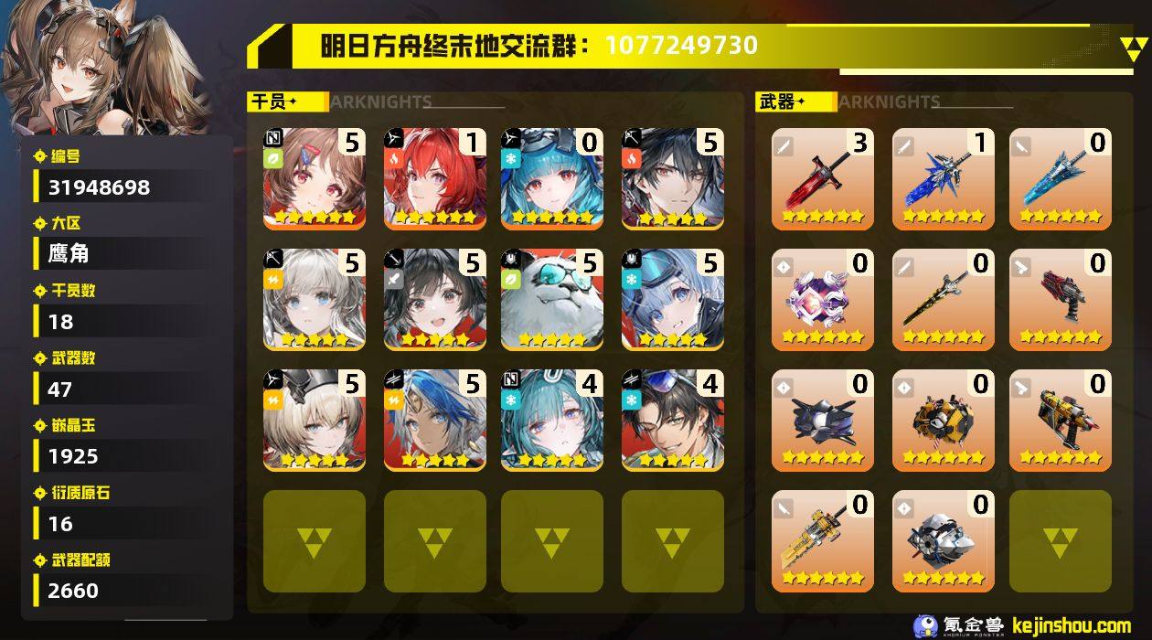 氪金兽&明日方舟:终末地交流1群 1077249730