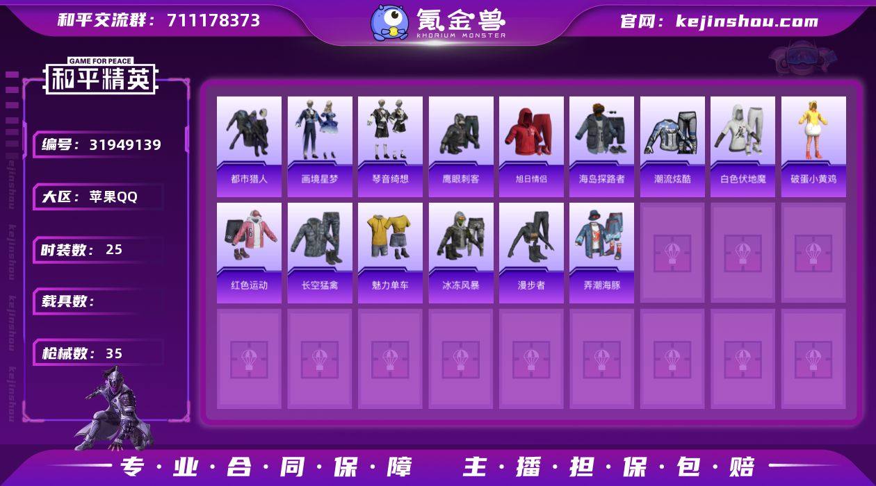 苹果 手Q-0粉装-3特效枪-0载具-2粉色飞行器-9186热力值-0王牌印记-25套装-35枪皮【热门品类】:套装-都市猎人【粉色枪皮等级】:ACE32-萌骑漫游(二级),Mk14-福马献瑞(四级),AA12-G-萌骑幻想(二级)【粉色枪皮】:ACE32-萌骑漫游,Mk14-福马献瑞,AA12-G-萌骑幻想【粉色飞行器】:炫彩糖果飞行器,极意拳锋飞行器【粉色降落伞】:极意拳锋降落伞,炫彩糖果降落伞【稀有套装】:套装-雪国风尚,套装-炫彩糖果,套装-马上有钱,套装-画境星梦,套装-琴音绮想,套装-雨过天青,套装-红釉青花【稀有枪皮】:AUG-冰晶雪宝,AKM-影袭,M416-蓝色火焰,GROZA-影袭,AUG-甜蜜菠萝,ACE32-画境星梦,UZI-影袭,MP5K-画境星梦,Kar98K-影袭,M24-影袭,Mini14-穿刺龙虾,M1加兰德-画境星梦,AA12-G-画境星梦,平底锅-画境星梦【其他套装】:套装-旭日情侣,套装-海岛探路者,套装-潮流炫酷,套装-白色伏地魔,套装-破蛋小黄鸡,套装-红色运动,套装-长空猛禽,套装-魅力单车,套装-鹰眼刺客,套装-冰冻风暴,套装-漫步者,套装-弄潮海豚【营地ID】:1030449052